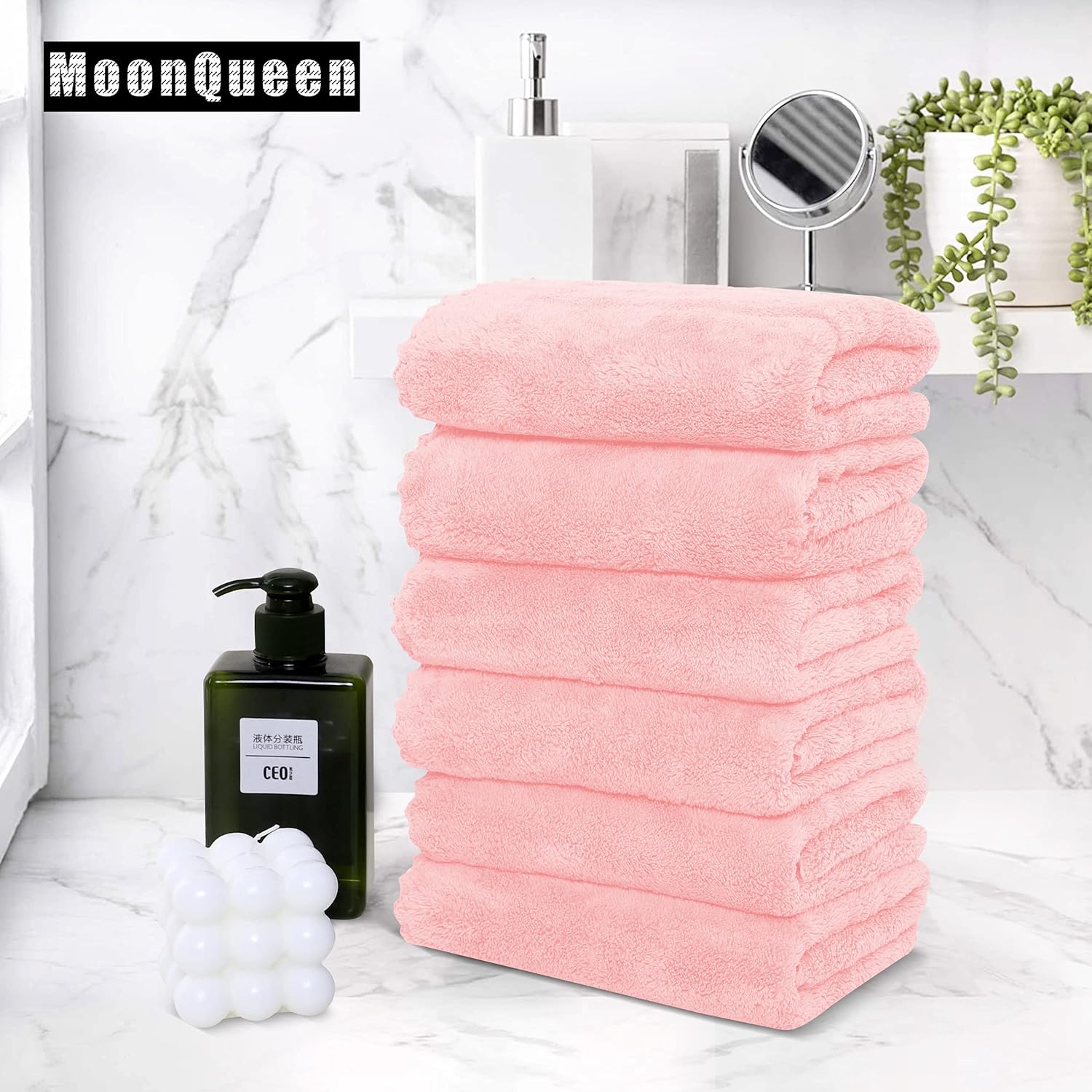 MOONQUEEN 6 Pack Premium Hand Towels - Quick Drying - Microfiber Coral Velvet Highly Absorbent Towels - Multipurpose Use as Hotel, Bathroom, Shower, Spa, Hand Towel 16 x 28 inches (Pink)