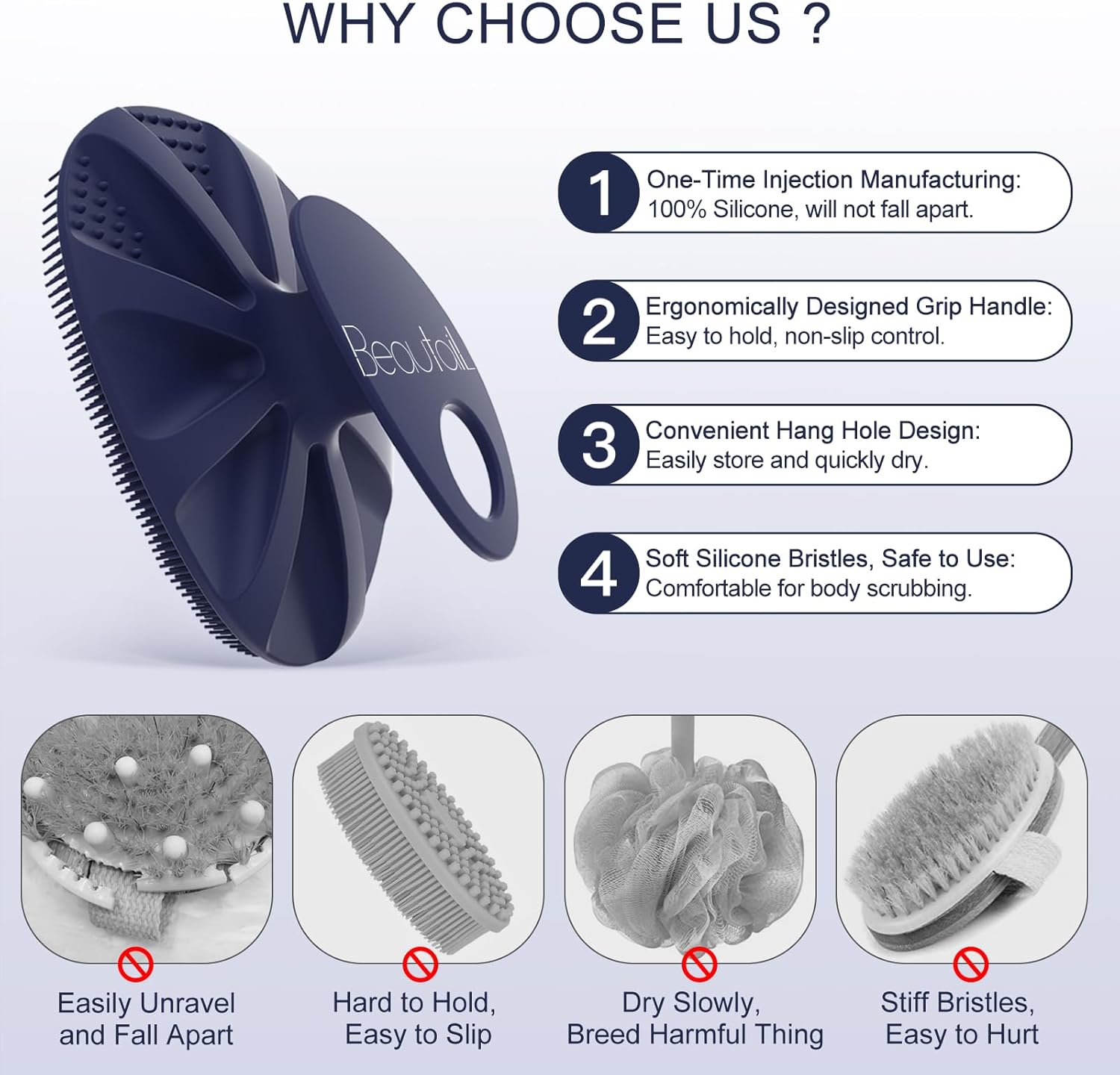 - MUCH SAFER AND MORE HYGIENIC: BEAUTAIL body scrubber is made from food-grade non-porous silicone, they dry so quickly and have antimi-crobial properties, are less likely to grow mo-ld or bac-teria.