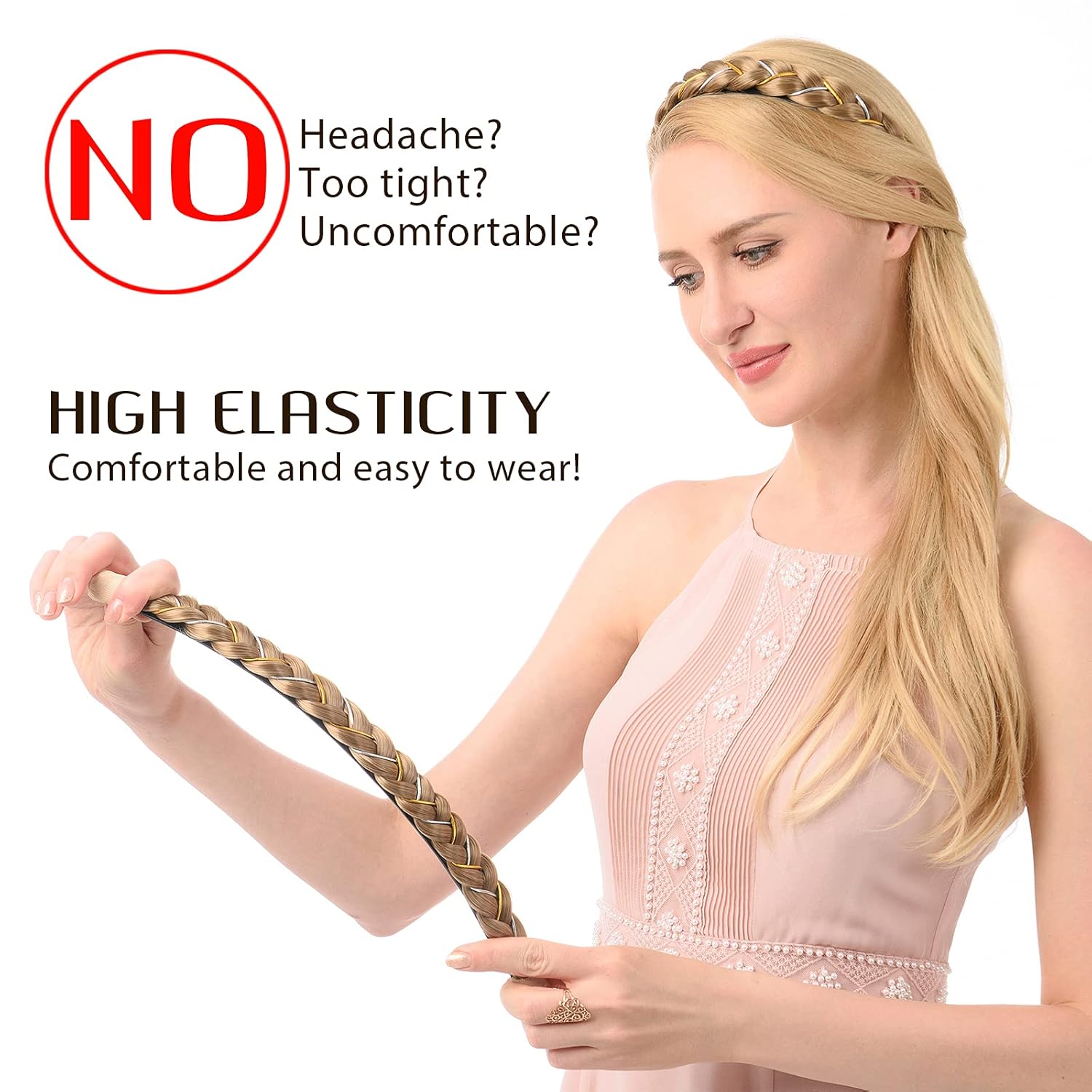 DIGUAN Width 0.9 inches Synthetic Hair Plaited Headband Braid With Teeth Hair Band Accessories for Women Girl (White Gray Brown)
