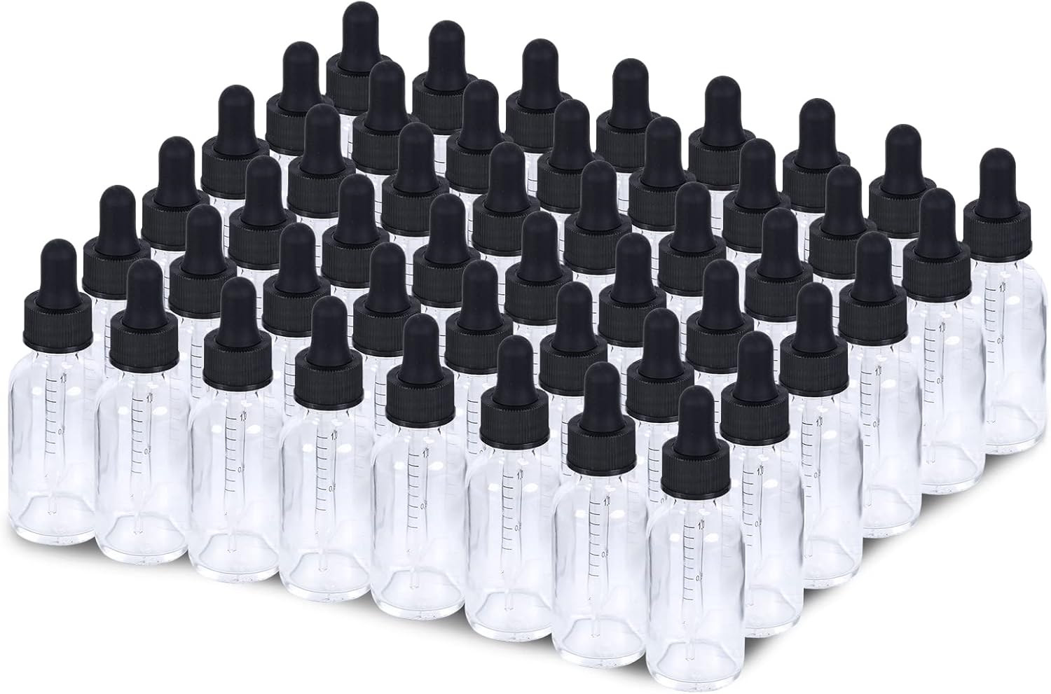 2 oz Dropper Bottle 48 Pack Clear Glass Boston Bottles 60ml with Eye Droppers Black Caps for Essential Oils, Perfume, Leak Proof Travel Bottles for Liquids
