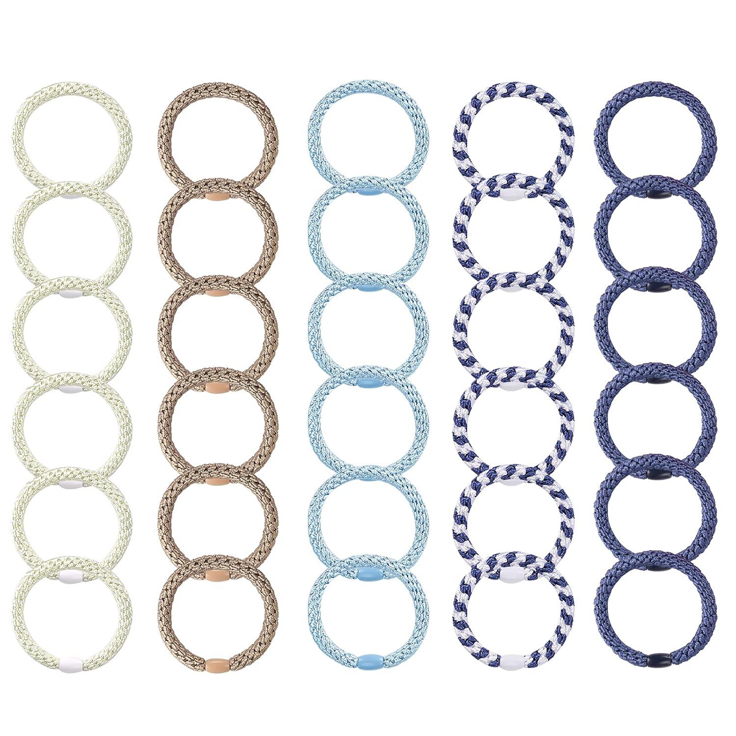 Funtopia 30 Pcs Hair Ties for Thick Hair - Bracelet Ponytail Holders, High Elastic Sports Accessories for Girls and Women, Mixed Color