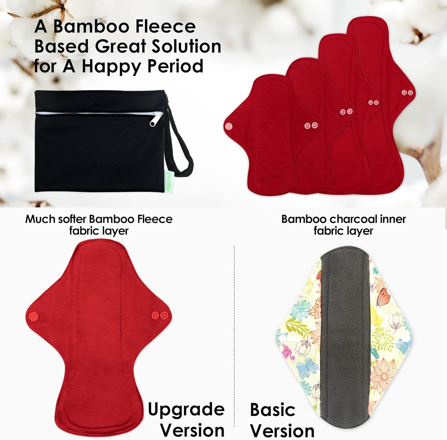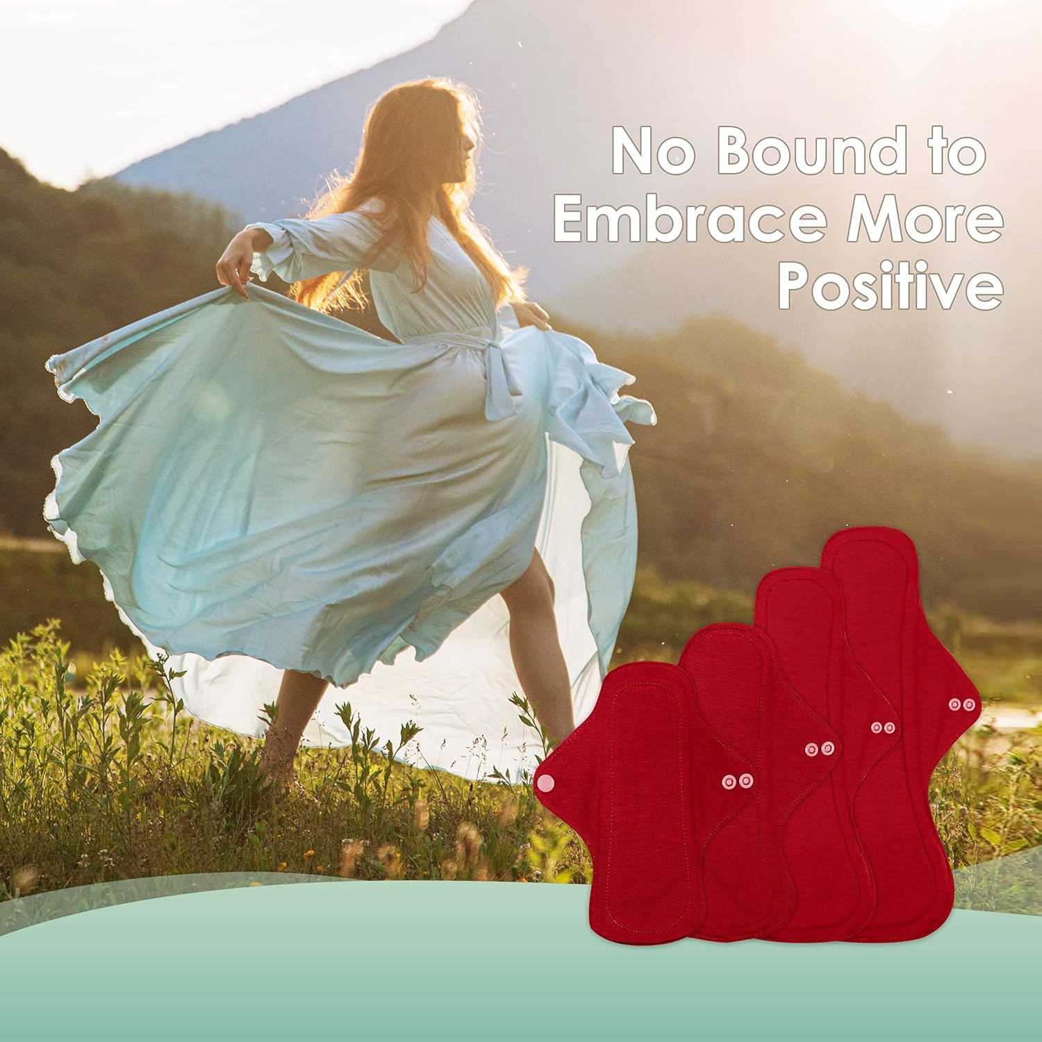 wegreeco 6 Pcs Reusable Menstrual Pads, Ultra Absorbent Cloth Pads for Heavy Flow, Sanitary for Teens, Women, Nonslip Panty Liners + Bag (Burgundy, Starter Kit Set)