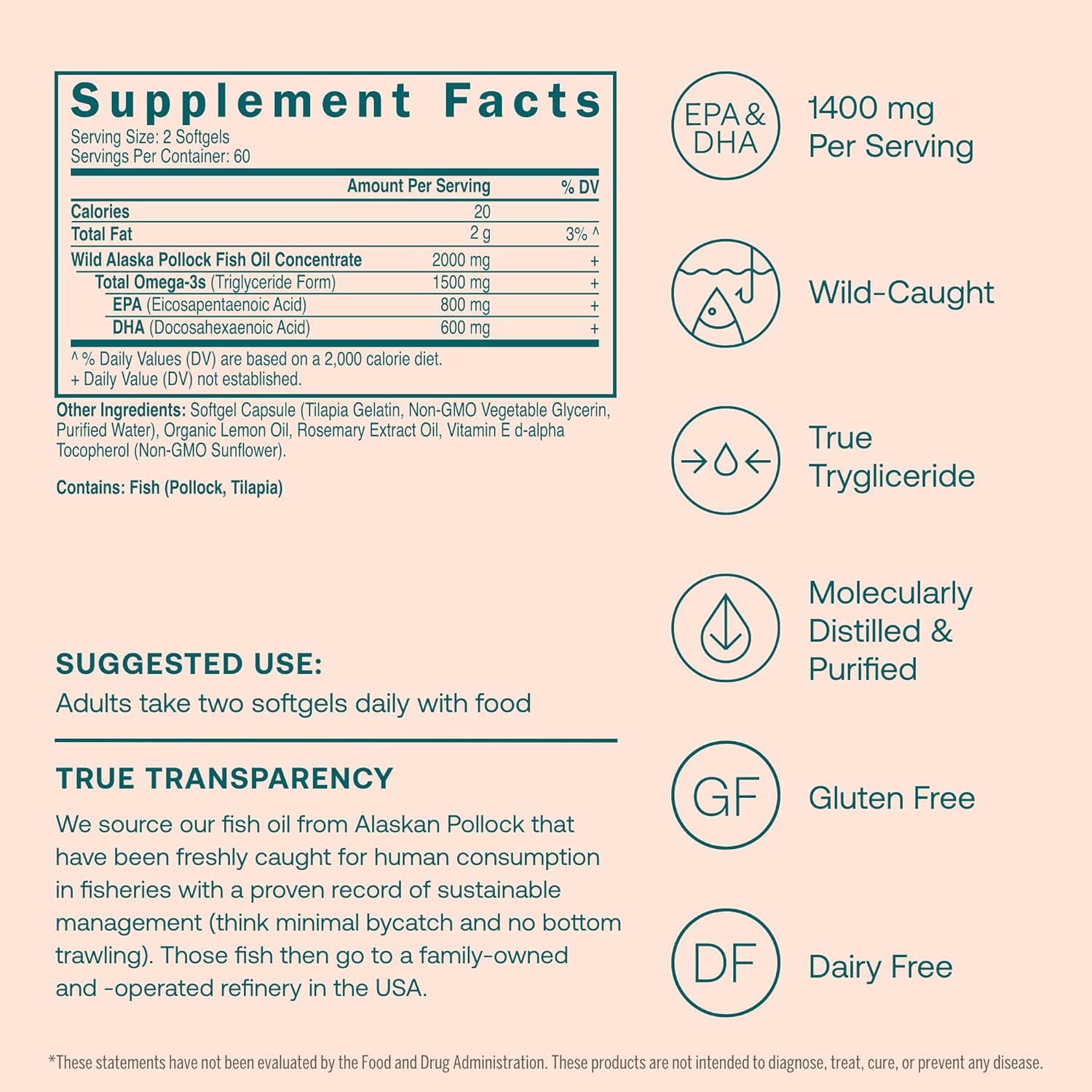 - TARGETED NUTRIENTS FOR WHOLE BODY WELLNESS - For those who expect more from their supplements. Crafted with intention, our fish oil is carefully sourced and selected providing high potency, optimal absorption, and utilization of the key nutrients EPA and DHA. Provides 1400 mg of these essential fatty acids in triglyceride form to support healthy blood lipid levels already within normal range, normal brain function, a healthy immune response and may help support joint health.