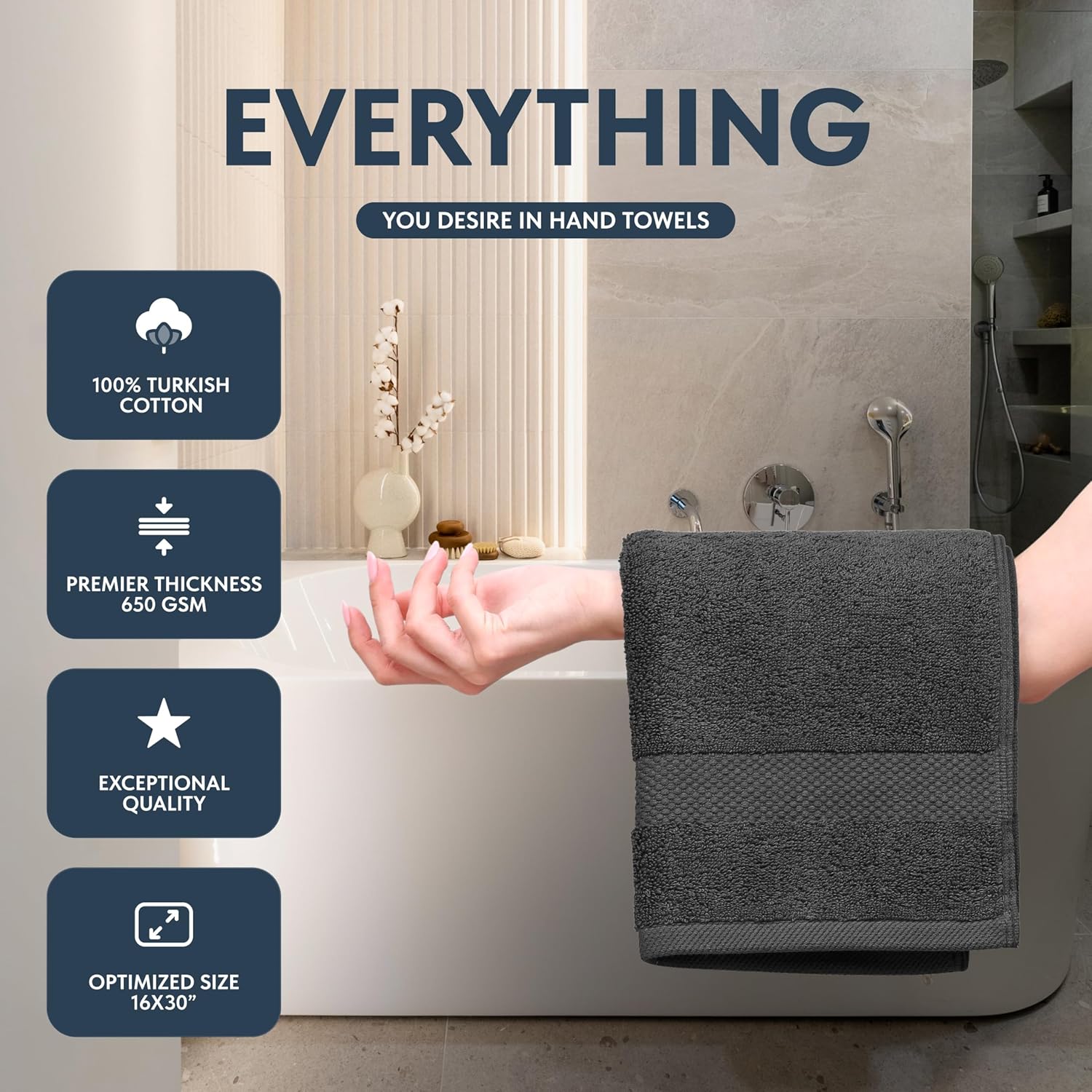 - HOTEL COLLECTION - 6-Piece Hand Towels are generously Sized at 16x30 inches. Each towel is 100% combed cotton - soft, durable, quick-dry, and wonderfully absorbent. It is more absorbent than any Turkish Cotton Face Towel.