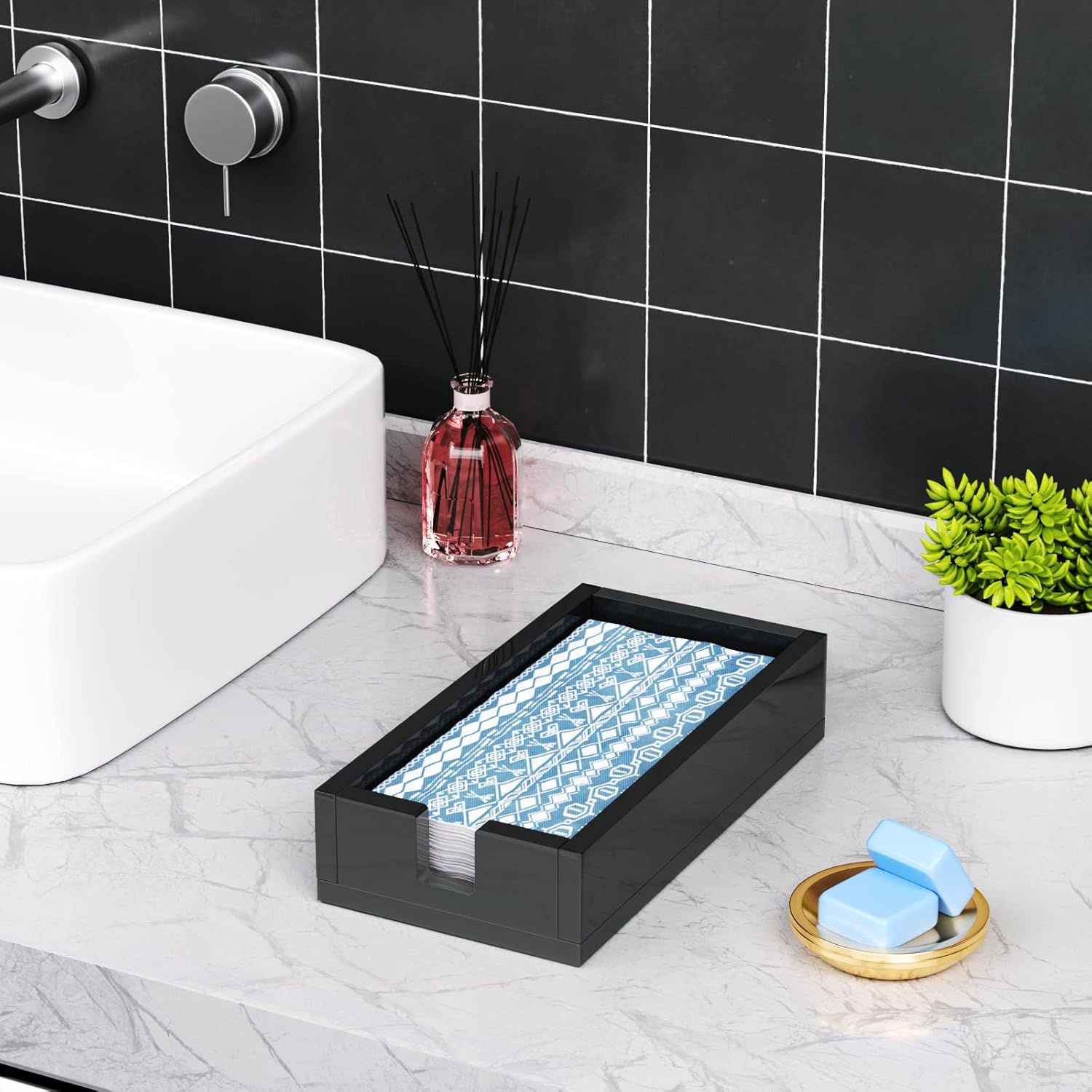 HIIMIEI Acrylic Napkin Holder for Bathroom, Black Acrylic Guest Towel Holder, Bathroom Napkins Guest Disposable Holder, Hand Towel Tray for Kitchen, Parties, Weddings, Party, Hotel, Restaurant(Black)