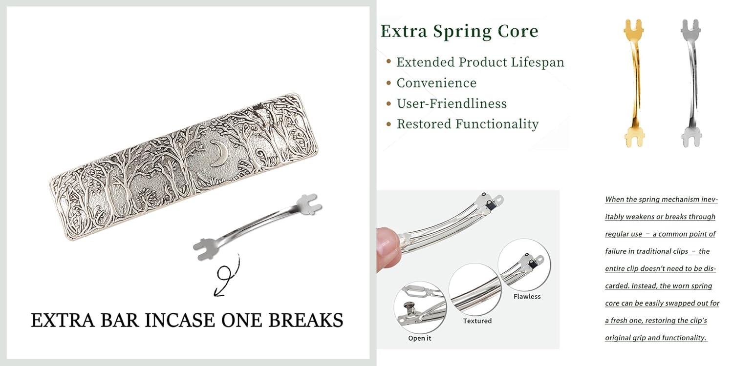 Amaxer Viking Gold Silver Barrettes for Women Girls Celtic Hair Clips for Thick Thin Hair Vintage French Hair Clips Hair Styling Accessories (Silver-Forest)