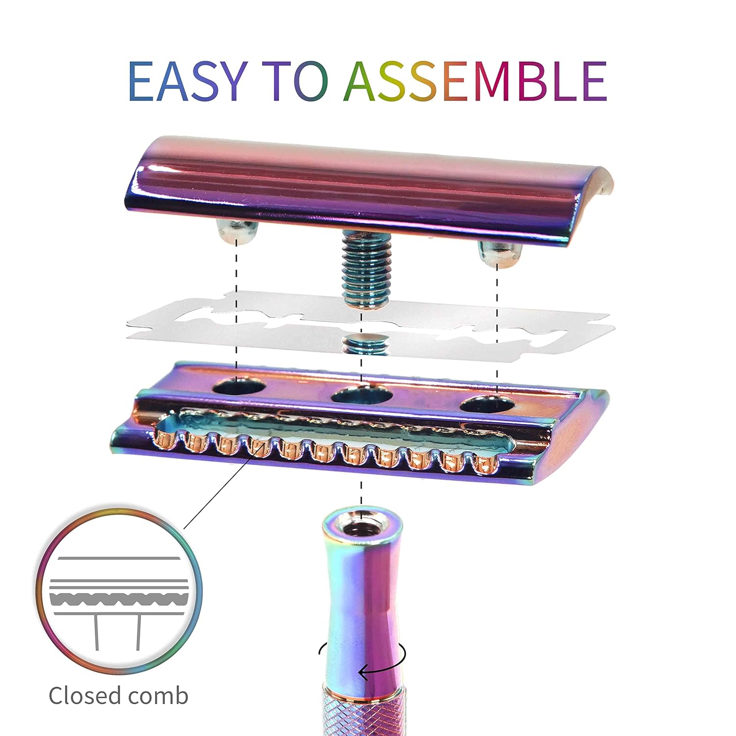 Bambaw Double Edge Safety Razor with 5 Safety Razor Blades, Women & Men’s Safety Shaving Razor, Reusable Razor, Plastic Free – Rainbow