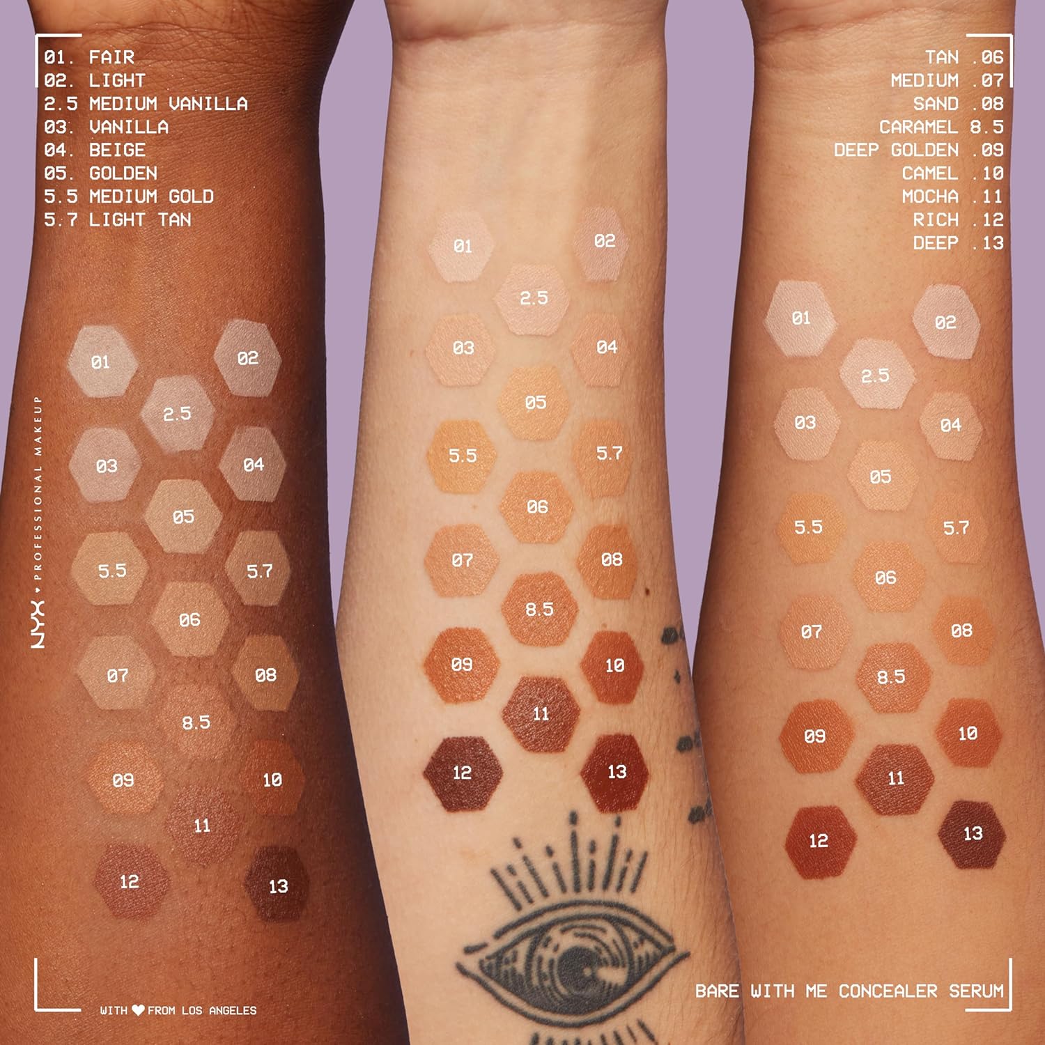 NYX PROFESSIONAL MAKEUP Bare With Me Concealer Serum, Concealer Makeup For Up To 24Hr Hydration - Tan