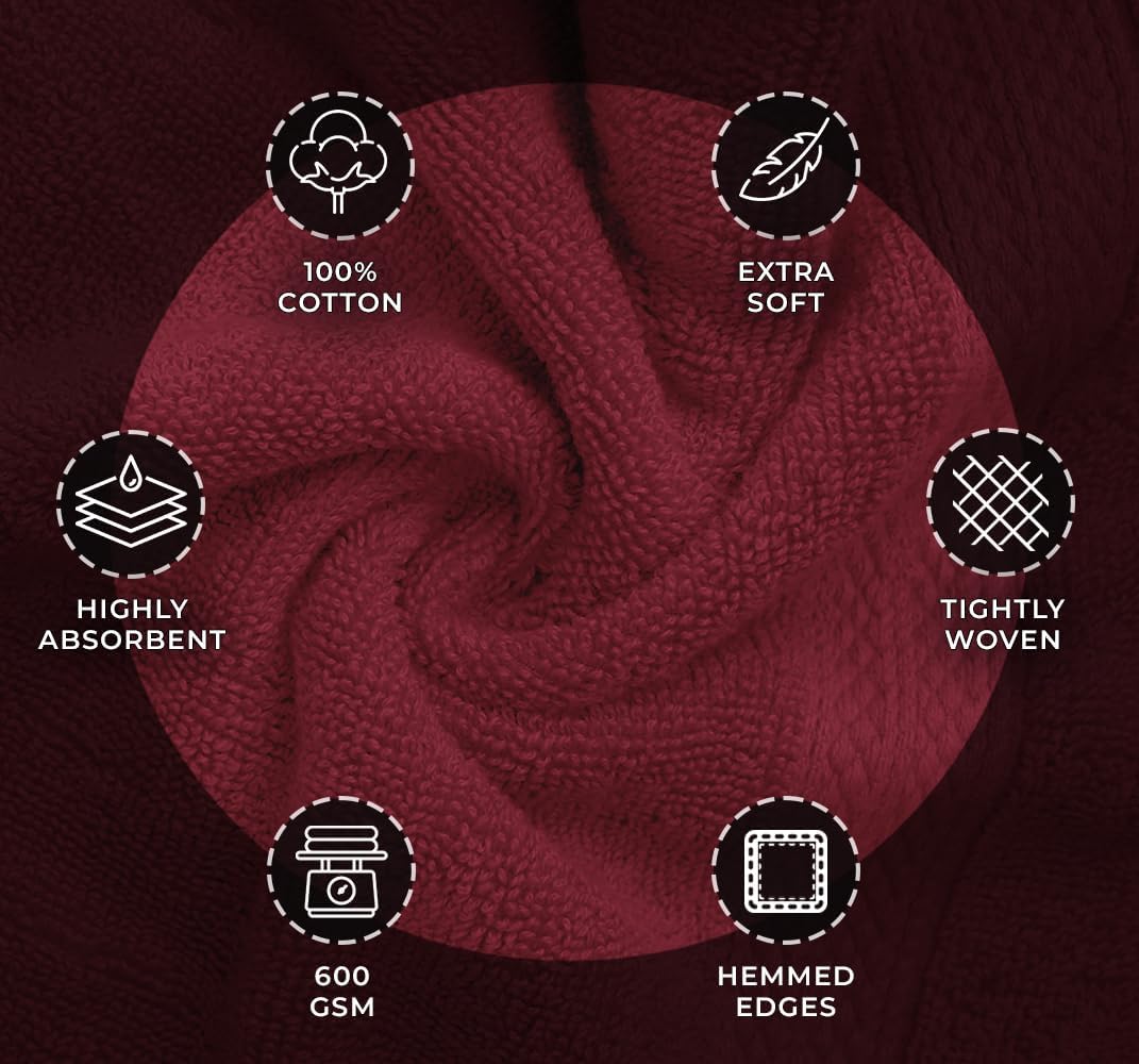 Avalon Towels Red Bath Towels Set of 4 pcs (27x54 inches), 100% Cotton Towel Absorbent and Quick Dry Red Towel for Bathroom, Super Soft and Perfect for Daily Use
