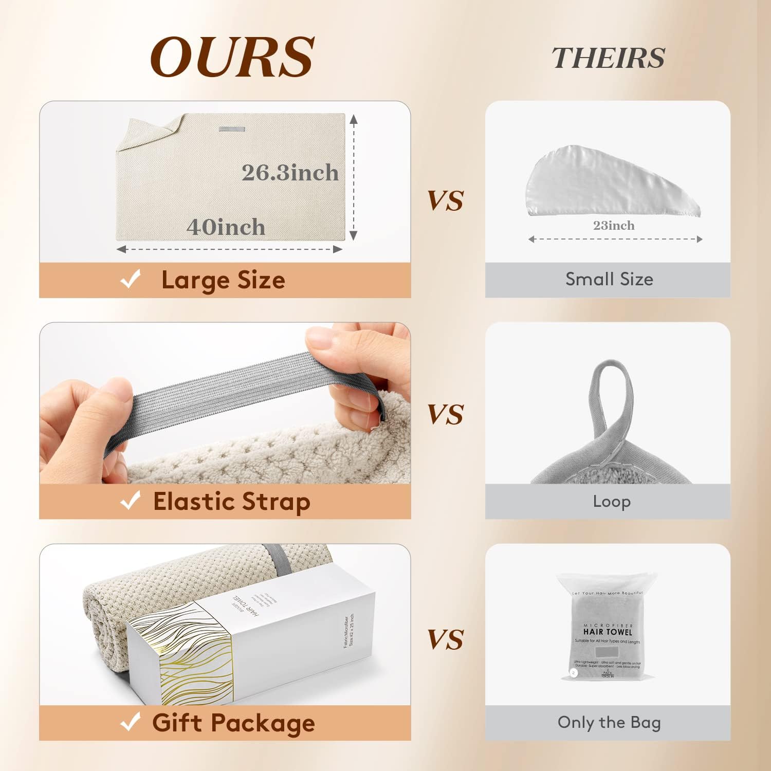YFONG Large Hair Towel Wrap for Women, Super Absorbent Microfiber Hair Towel for Curly Hair, Fast Drying Hair Turbans with Elastic,Hair Drying Towel Wrap for Hair Care 26.3" X 40" (Camel)