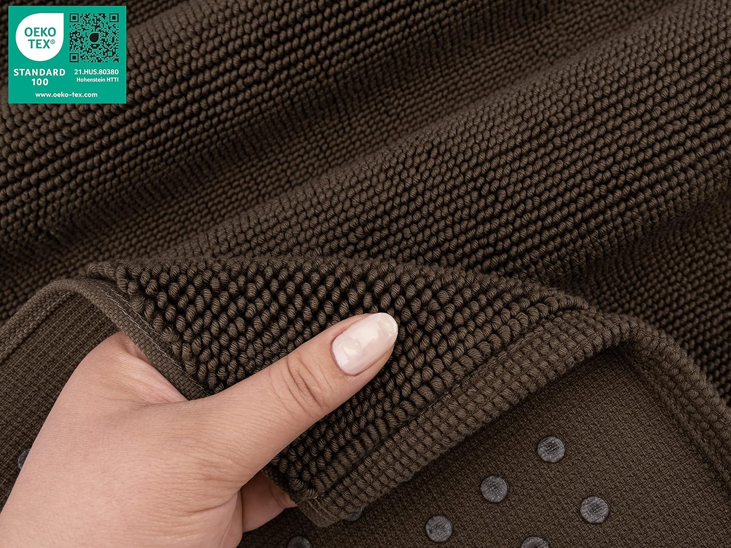 American Soft Linen Bath Rug, 17 in 24 in 100% Cotton Bath Mats Rugs for Bathroom, Slip Reducer Washable Shaggy Form Area Rugs, Brown Bath Rug