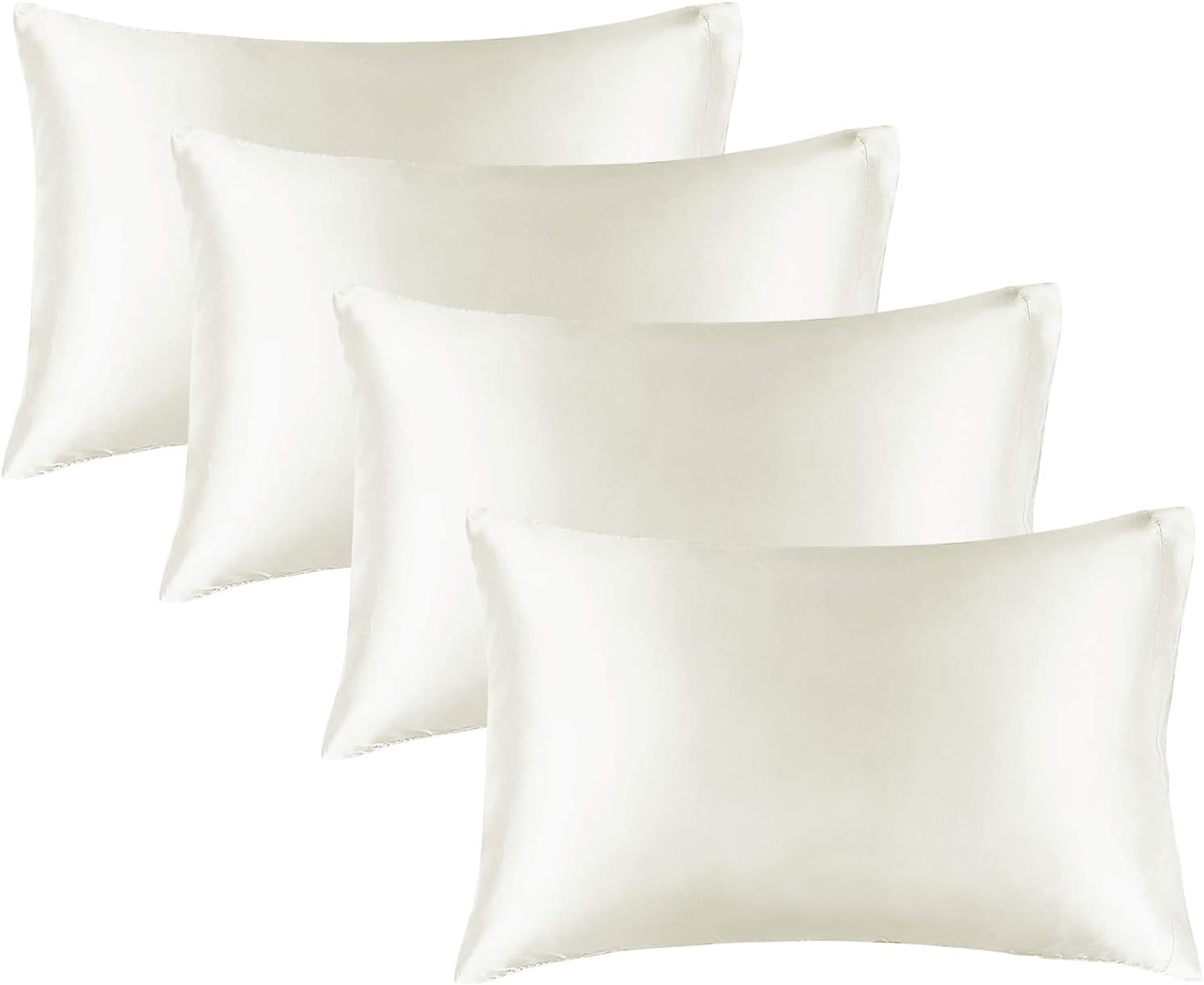 BEDELITE Satin Pillowcase for Hair and Skin, Super Soft Similar to Silk Pillow Cases 4 Pack with Envelope Closure, Cooling Pillowcases for Women Men (20"x26" Standard Size, Ivory)