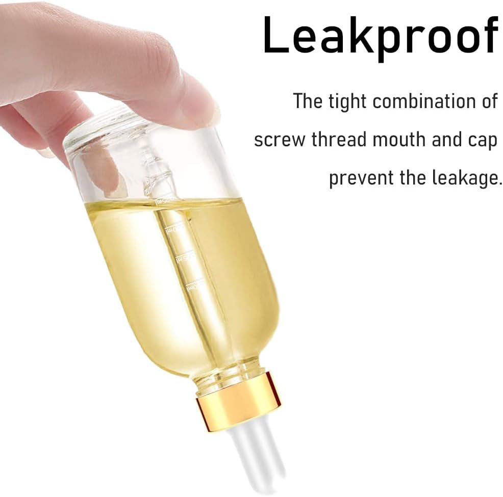 - High-Quality Material: the oil dropper bottle is made of thickened glass, leak-proof Golden lids, and corrosion-resistant silicone tops.
