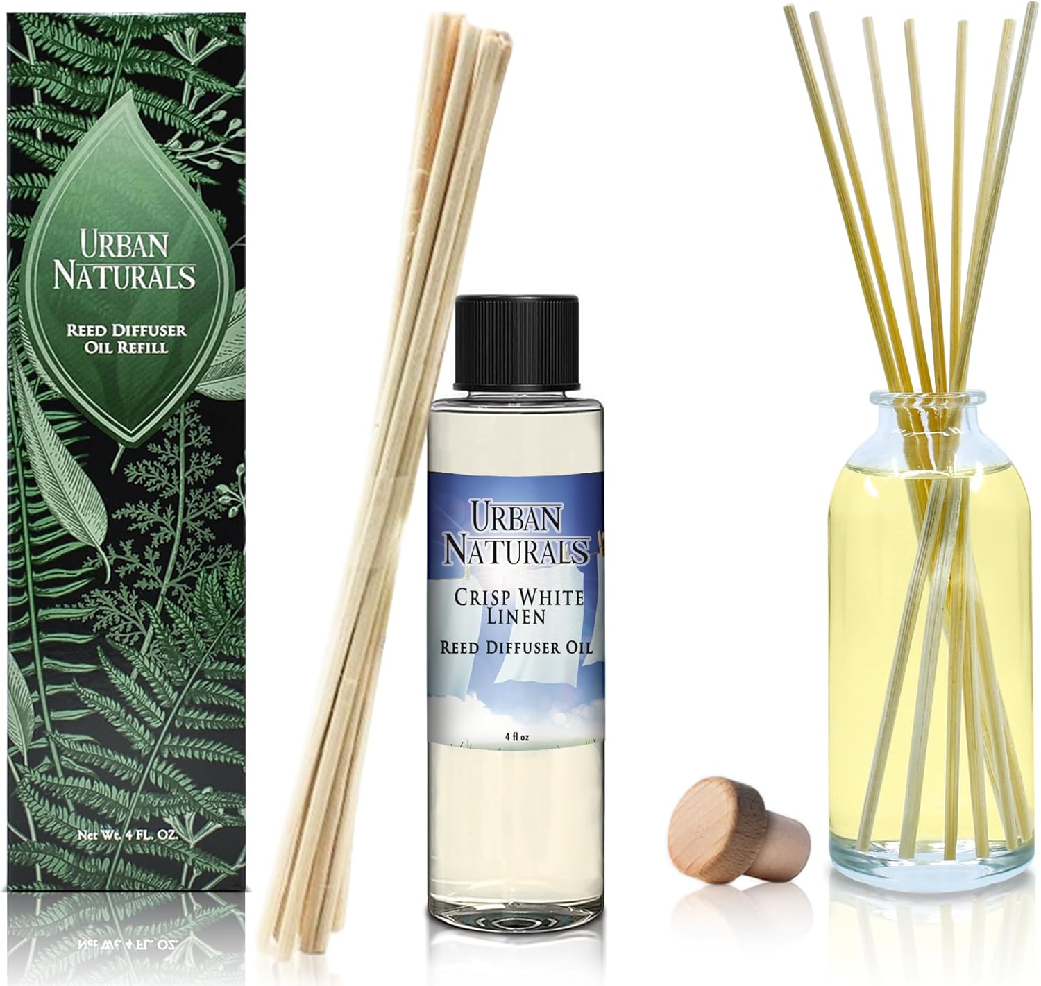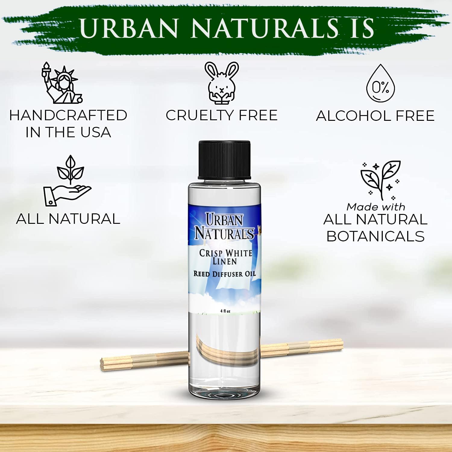 Urban Naturals Crisp White Linen Scented Oil Reed Diffuser Refill | Free Set of Reed Sticks! A Fresh, Clean Cotton Scent, 4 oz (2 Pack)