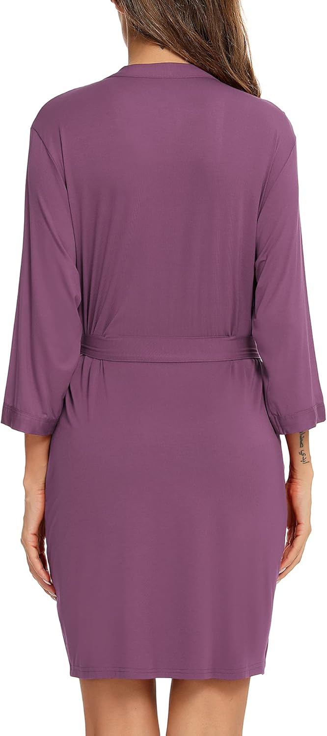- Unique Design —— This comfortable and sexy bath robe features 3/4 sleeves wrap design robe, waist front tie, side pockets to keep your hands warm or to keep things close by your side while you are lounging or nursing your baby.
