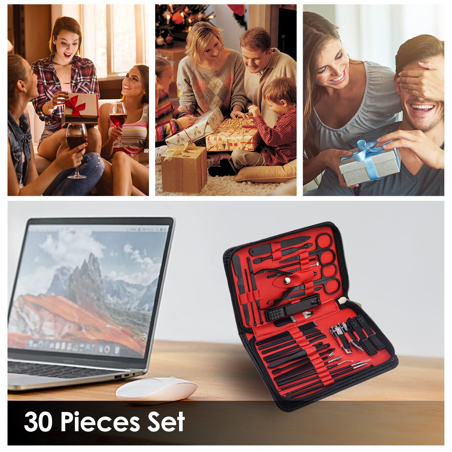 WOAMA 30-Piece Manicure Set Pedicure Kit Professional Nail Clipper Set Stainless Steel Manicure Kit Nail Kit for Women Men - Black