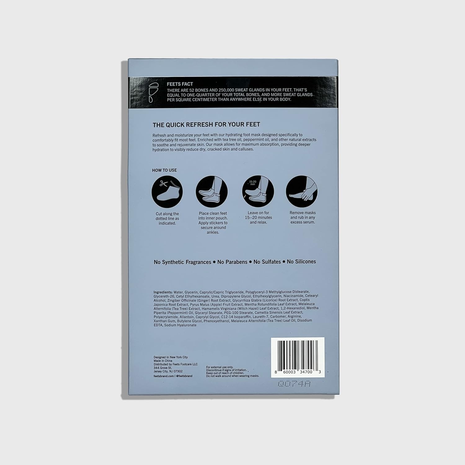 FEETS Hydrating Foot Mask with Tea Tree and Peppermint (3-Pack) | Perfect for Men and Women | Deeply Moisturizes Full Foot and Heel | Ultra Hydrating | Soften Calluses, Nourish Heels, and Cool Feel