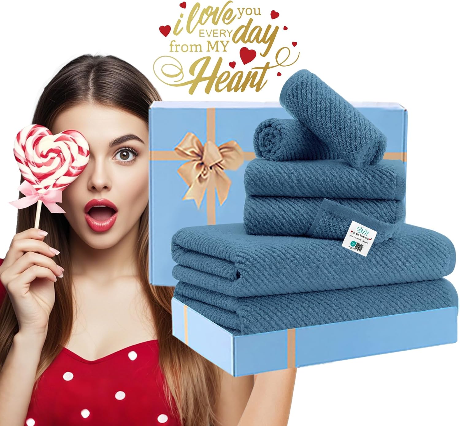 VOOVA & MOVAS Blue Towels Bathroom Sets, 100% Cotton | Lightweight | Soft | Quick Dry | Thick, Towel Set of 6, 2 Large Bath 30"x56", 2 Hand 18"x28", 2 Wash Cloths 13"x13", Denim Blue Towel Gift