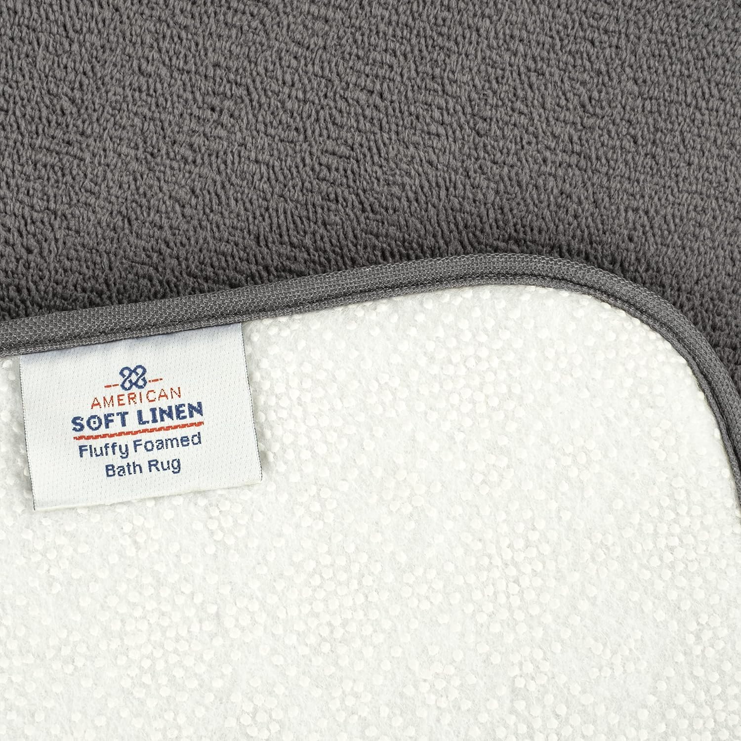 American Soft Linen 21x32 Fluffy Foamed Slip Reducer Bath Rug, Machine Washable Area Bath Mat Rugs for Bathroom, Gray
