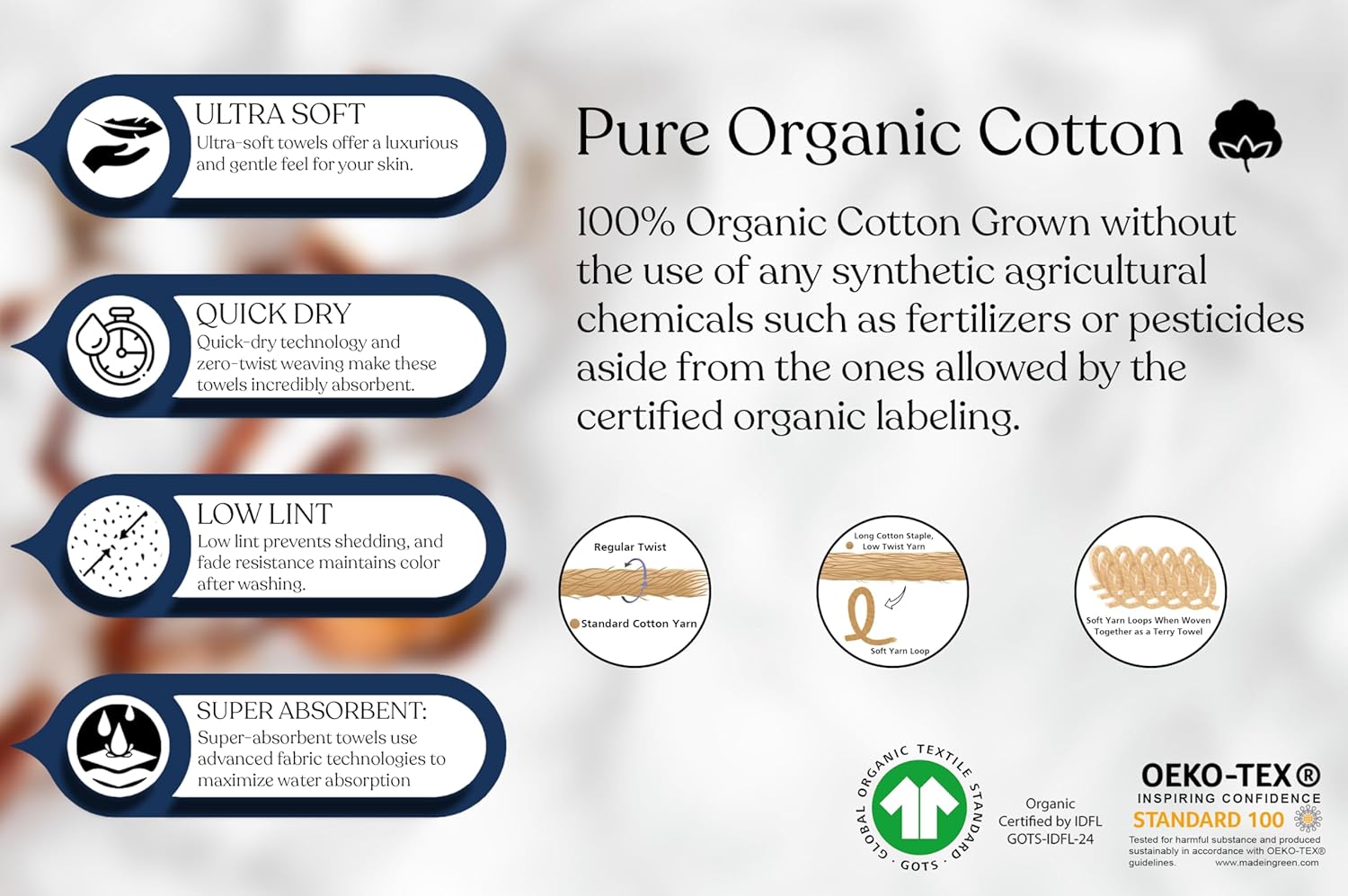 - GOTS CERTIFIED & OEKO-TEX GREEN CERTIFIED: This product meets the strict requirements of the Global Organic Textile Standard (GOTS), the worldwide leading processing standard for organic textiles to ensure a healthier home for you and a better planet for all. When you shop for cotton made without harmful chemicals, you're contributing to cleaner soil and waterways.Tested for harmful substances and products substantially in accordance with Oeko Tex guidelines.