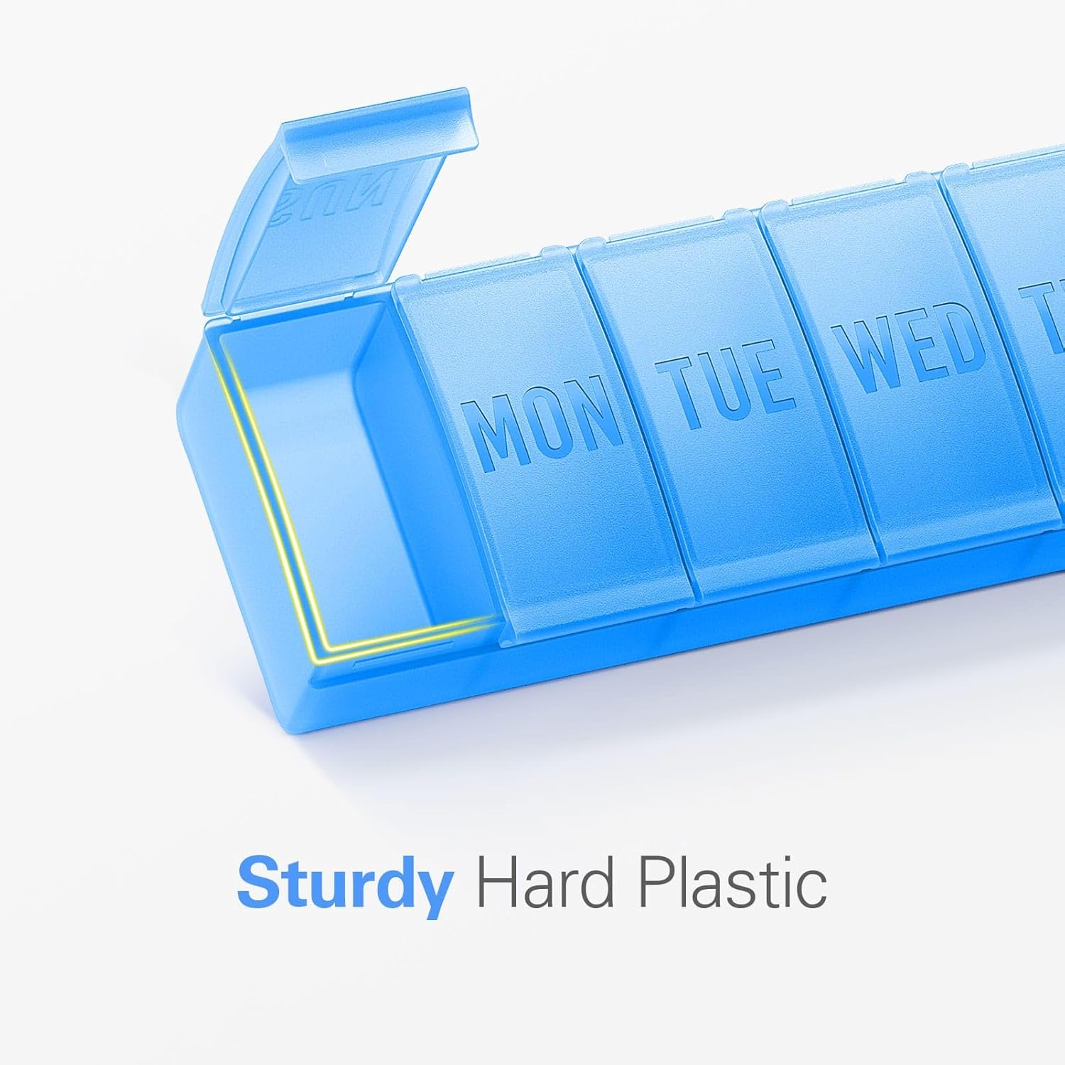 - Upgraded Easy Open Design: Ingenious design with protruding edge of the lids makes the pillbox easy to open, no problem for the elderly or arthritis