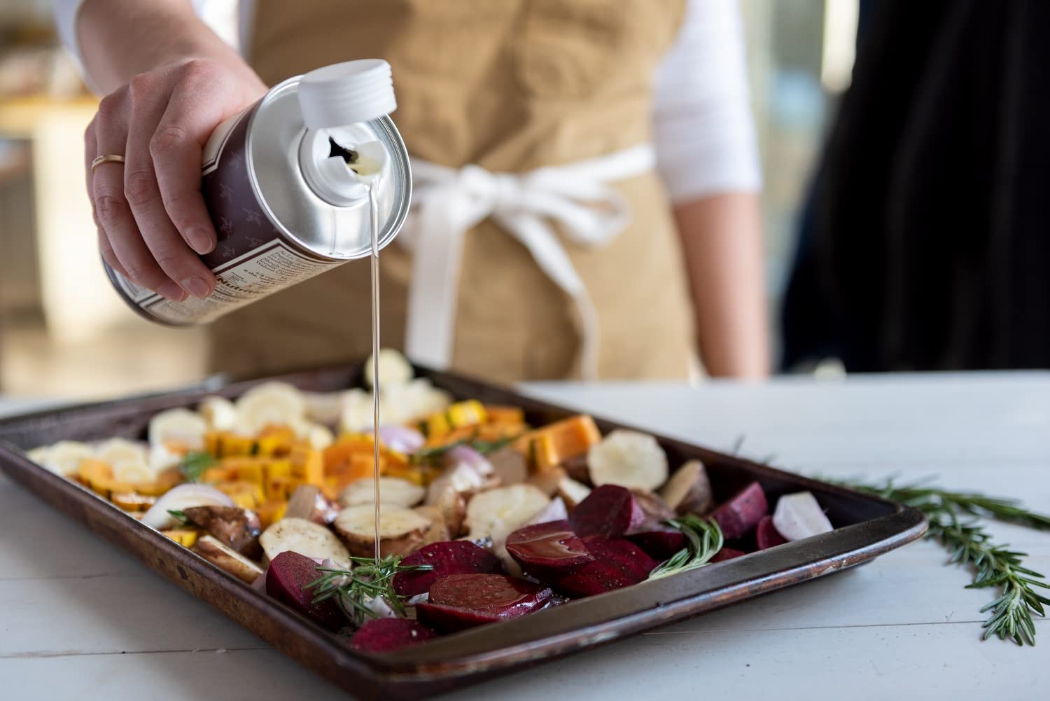 - CLIMATE-FRIENDLY 5L BOX: This 5 Liter Bag-in-Box is more environmentally friendly to ship, and is equivalent to 10 of our 16.9 Fl Oz (500 mL) tin cans. It comes with a spout for pouring oil directly onto your cooking surface, or for refilling reusable oil bottles.
