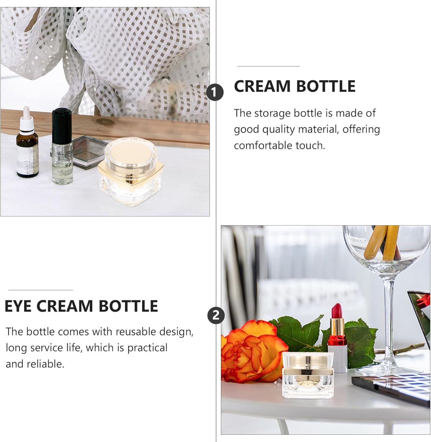 - Flat lids and straight edges make these lids easy to use and stack. The bottle can your cosmetics from direct sunlight.