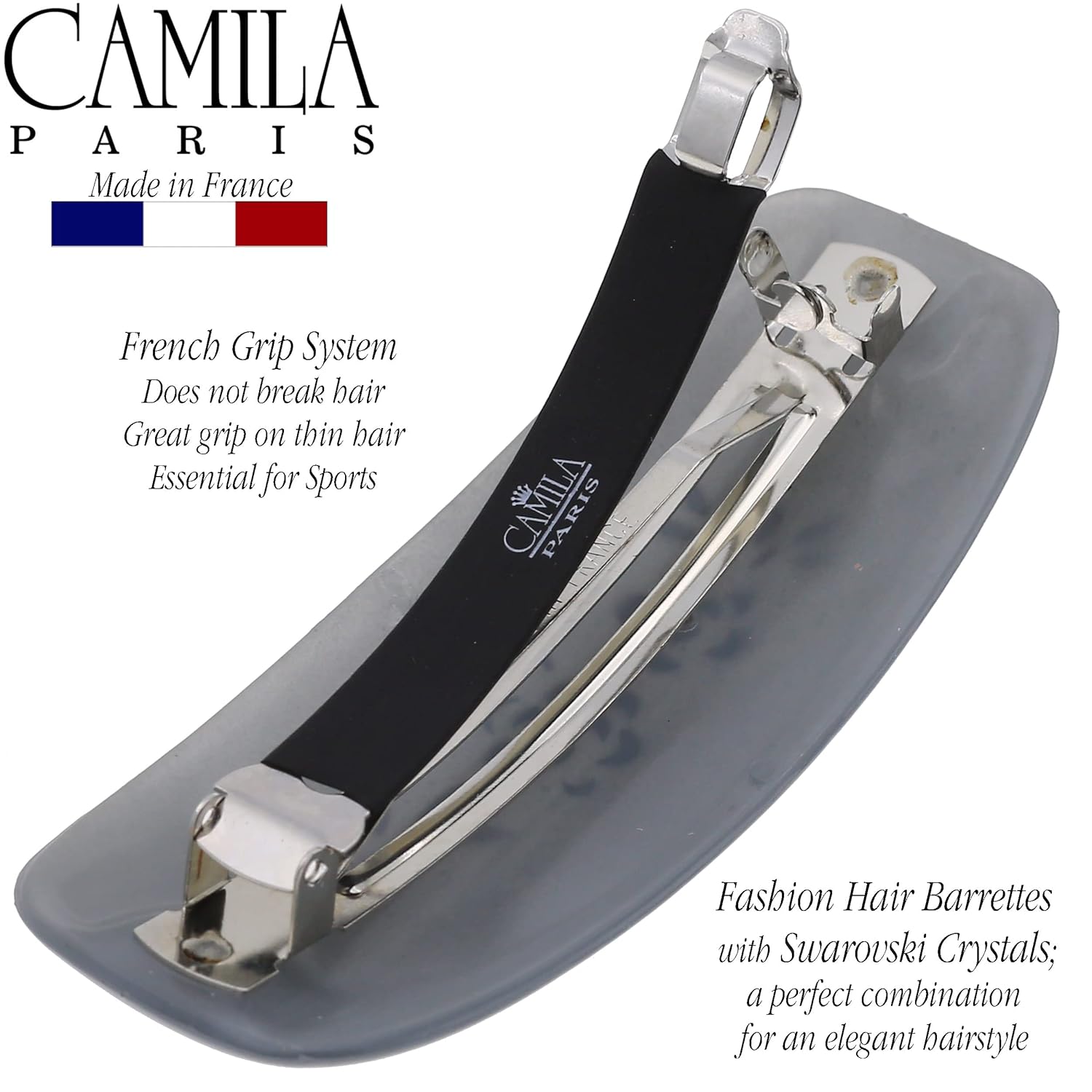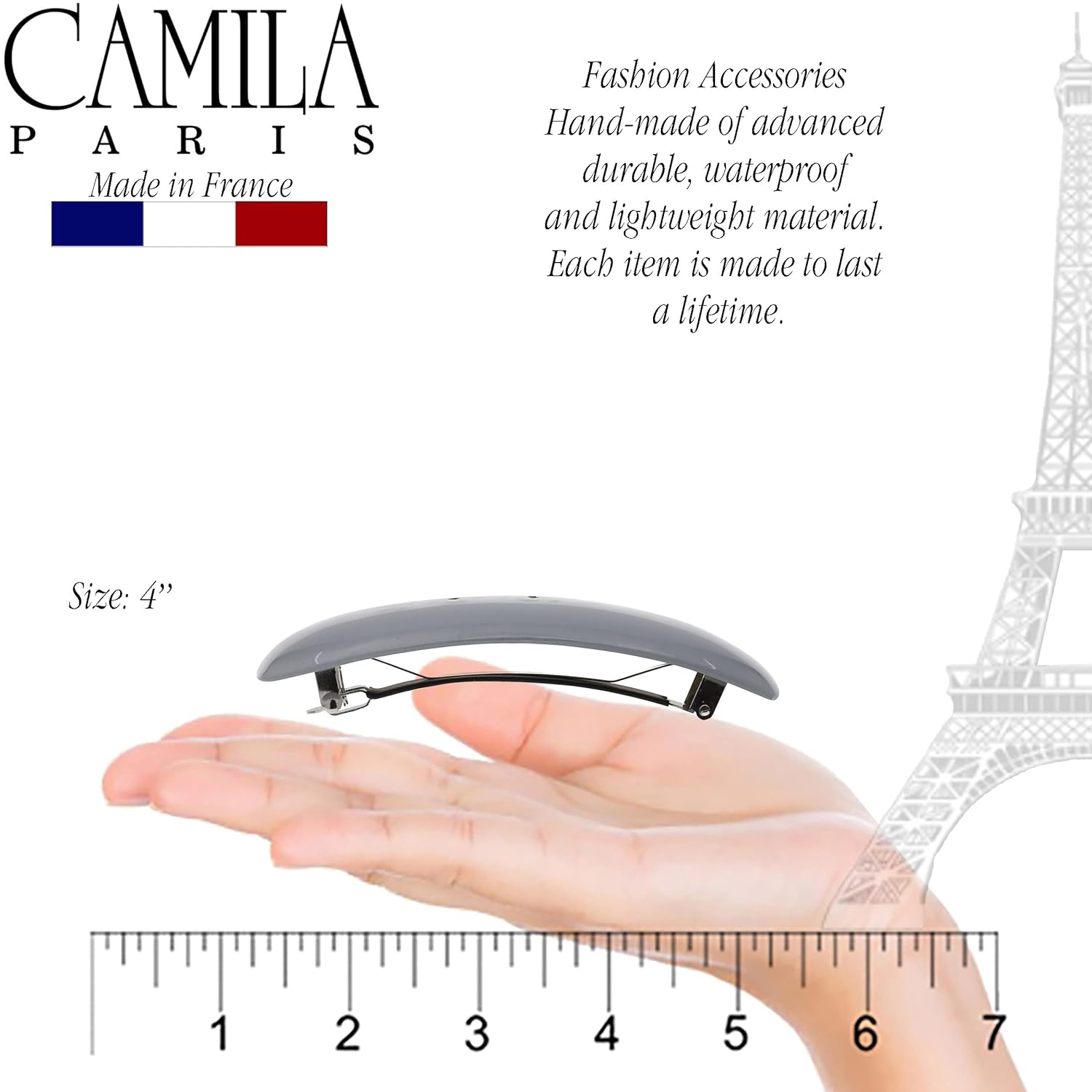 Camila Paris CP3439 French Hair Barrette Clip for Girls, Rubberized Automatic Clasp Strong Hold Grip Hair Clips for Women, No Slip and Durable Styling Girls Hair Accessories, Made in France (Gray)