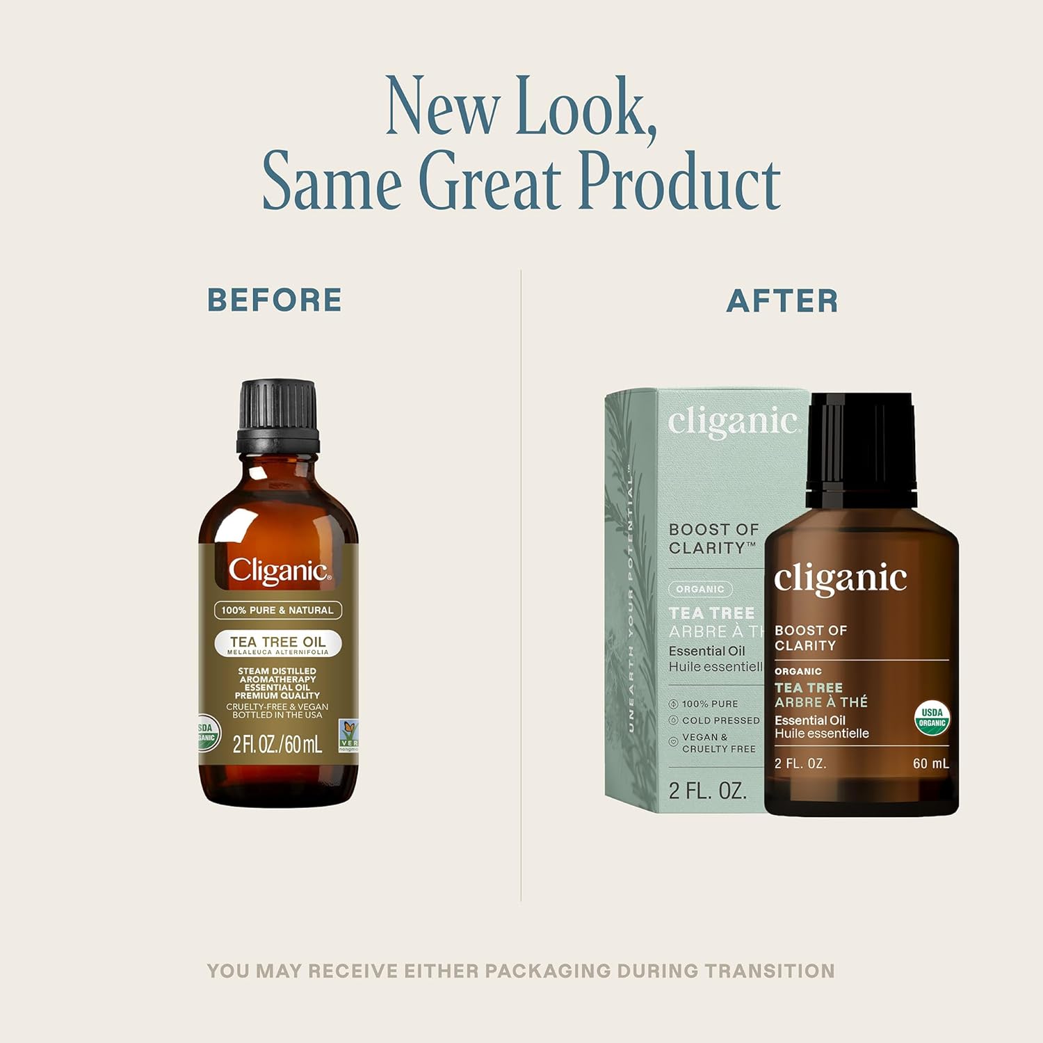 Cliganic Organic Tea Tree Essential Oil - 100% Pure Natural for Aromatherapy Diffuser | Non-GMO Verified (Packaging May Vary)