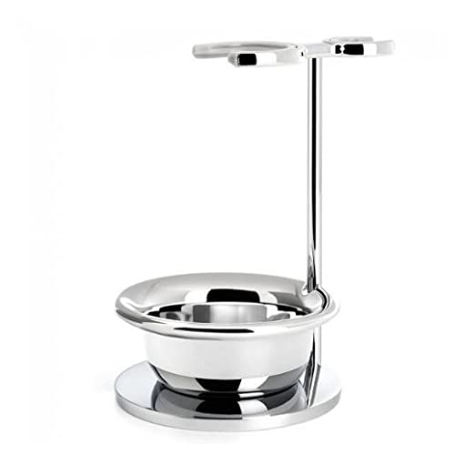 - COMPLETE SET: This eye-catching, timeless shaving kit includes both a chrome stand for displaying the brush and razor along with a chrome bowl for shave cream or soap. Makes a fantastic starter kit and gift set for anyone.
