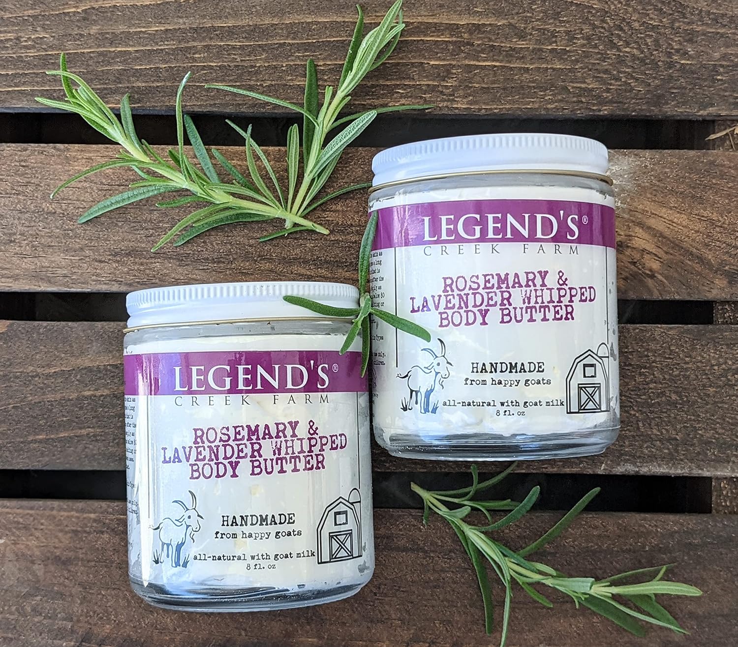Legend's Creek Farm, Goat Milk Body Butter - Hydrating Natural Body Moisturizer with Organic Shea Butter & Grape Seed Oil - 8 Oz Purifying & Toning Whipped Body Butter (Rosemary & Lavender)
