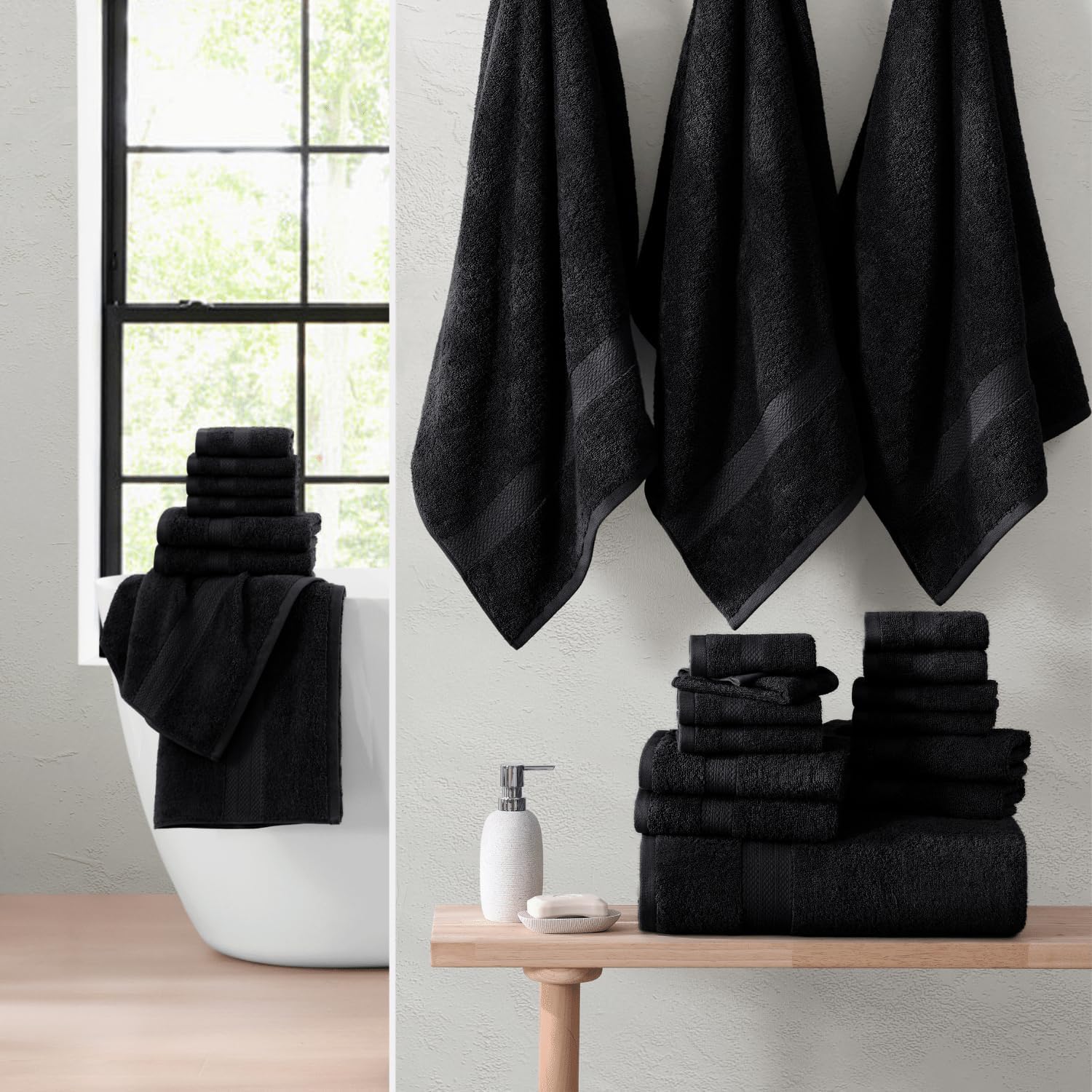 LANE LINEN 100% Cotton Bathroom Towel Set - 24 Pcs, Hotel Quality - Super Soft & Highly Absorbent - Ring Spun - 2 Bath Sheets, 4 Fingertip, 4 Bath, 6 Hand Towels, 8 Washcloths - Family Pack - Black