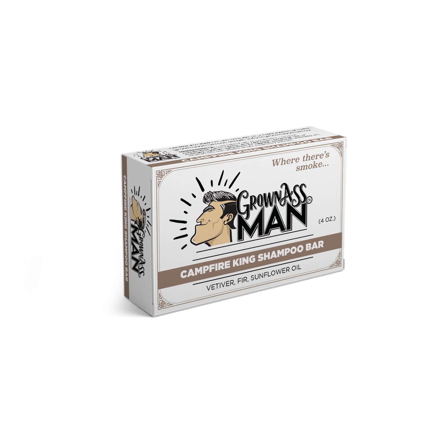Grown Ass Man Co. - Solid Shampoo Bar Rich Lather 3 in 1: Hair, Beard & Body Wash - Plastic Free & Eco-Friendly, Natural & Organic Clean for All Hair Types, 4oz Bar (Campfire King, 3-Pack)
