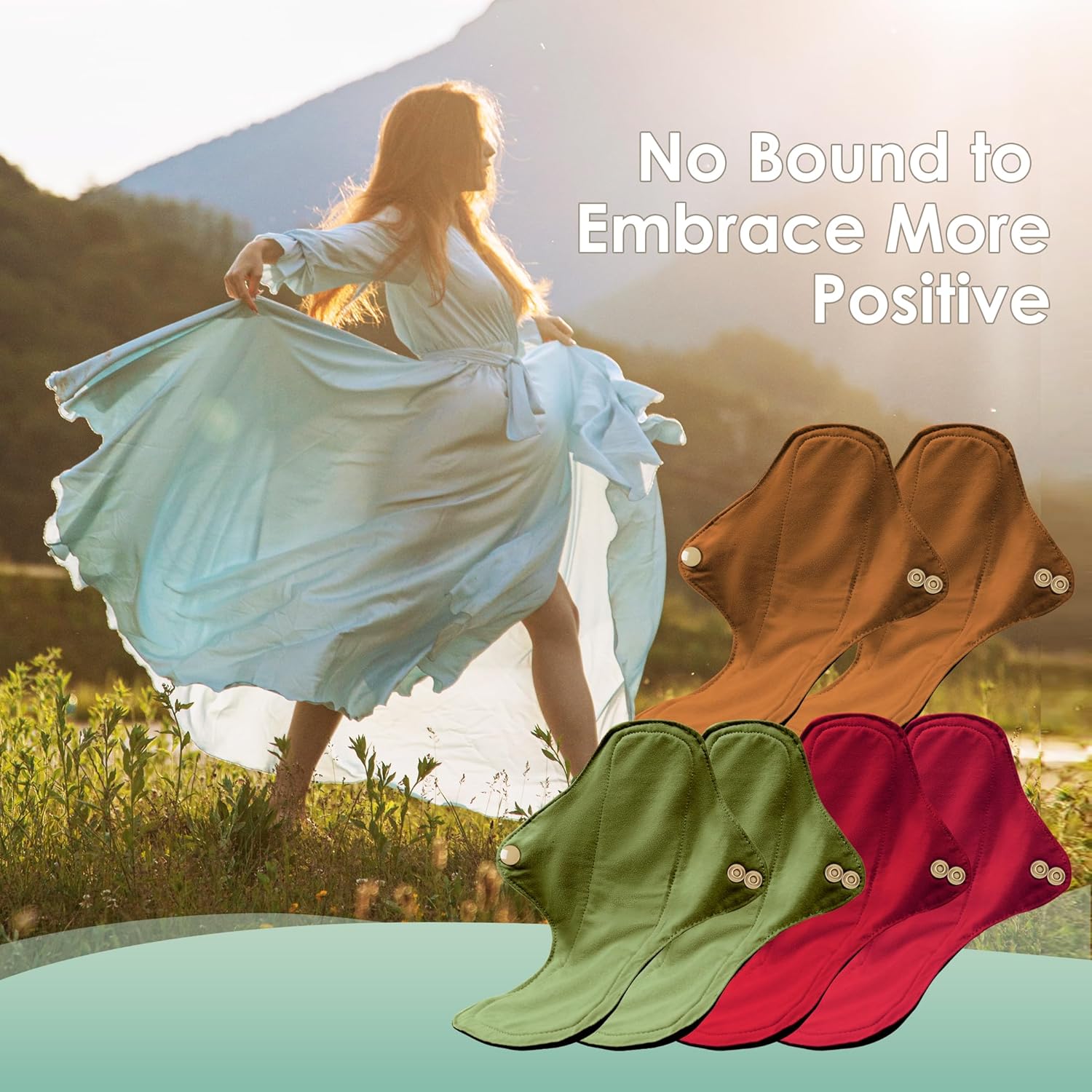 wegreeco 6 Pcs Reusable Menstrual Pads, Ultra Absorbent Cloth Pads for Heavy Flow, Sanitary for Teens, Women, Nonslip, Inner Aqua, Burgundy, Coffe, Rose Gold Outer, M