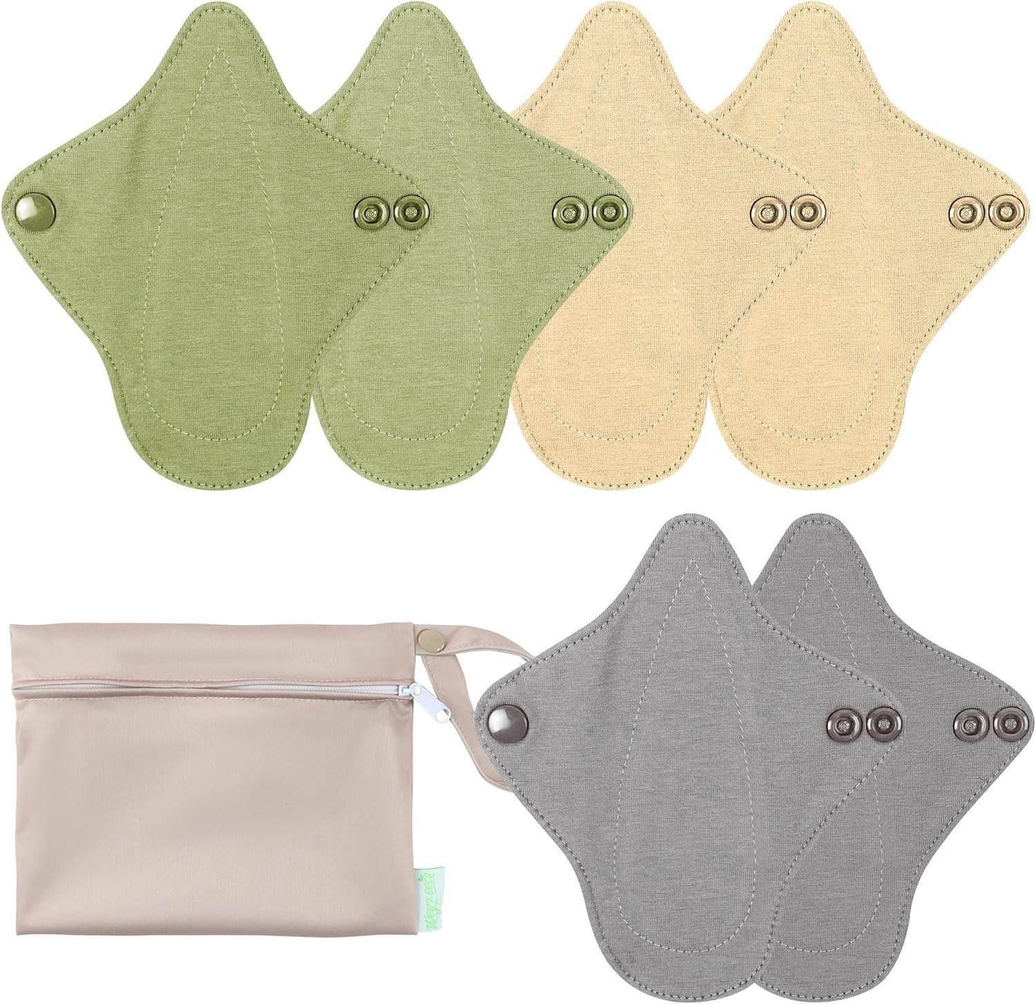 wegreeco 6 Pcs Reusable Menstrual Pads, Ultra Absorbent Cloth Pads for Heavy Flow, Sanitary for Teens, Women, Nonsli, Inner Mustard Yellow, Grey, Beige, Rose Gold Outer, XS
