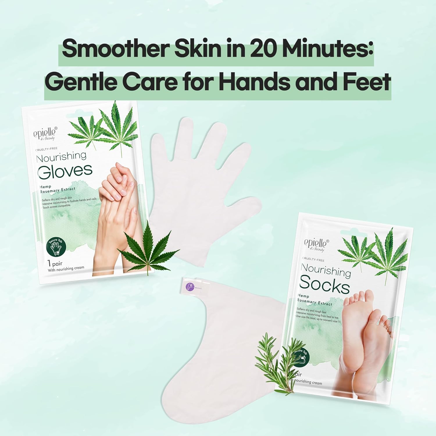 Epielle Nourishing Hand Masks 6 Pairs, Deep Moisturizing Gloves for Dry, Cracked Hands, Repair and Nourish with Hemp & Rosemary Extract, Korean Skin Care, Spa Set, Self Care Gifts for Women