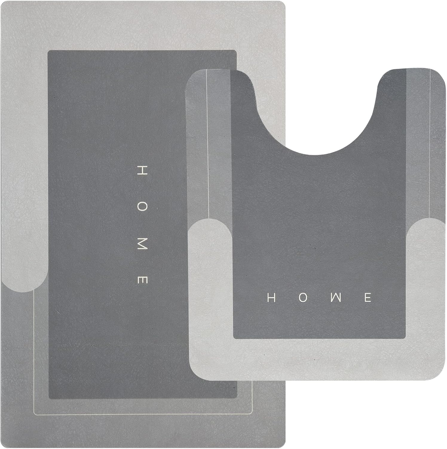 HelloTree 2Pcs Ultra Soft Napa Skin Bath Mat and U-Shaped Toilet Rug, Water Absorbent and Non Slip Shower Bath Rug for Bathroom, Tub and Shower - 20"x32"+20"x24", Grey
