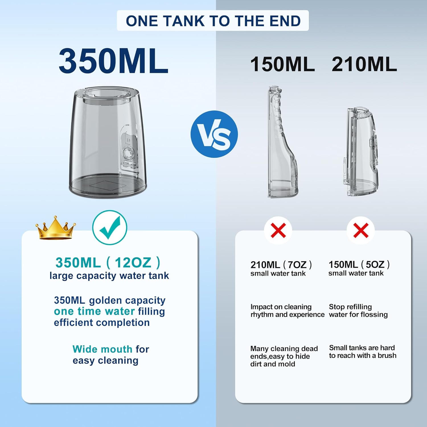- 【350ML Big capacity & IPX7 Waterproof】Yes, With 350ml water tank! don't need to refill water multiple times.Our water dental flosser can take more water than other portable flosser in the market. The removable water tank is easy to clean. Water dental flossers picks owns internal water leak-proof design, Mocel oral irrigator prevent water leakage reliably, It can use for shower in the bathroom and it's washable to clean (Make sure the rubber base cover is closed tightly )