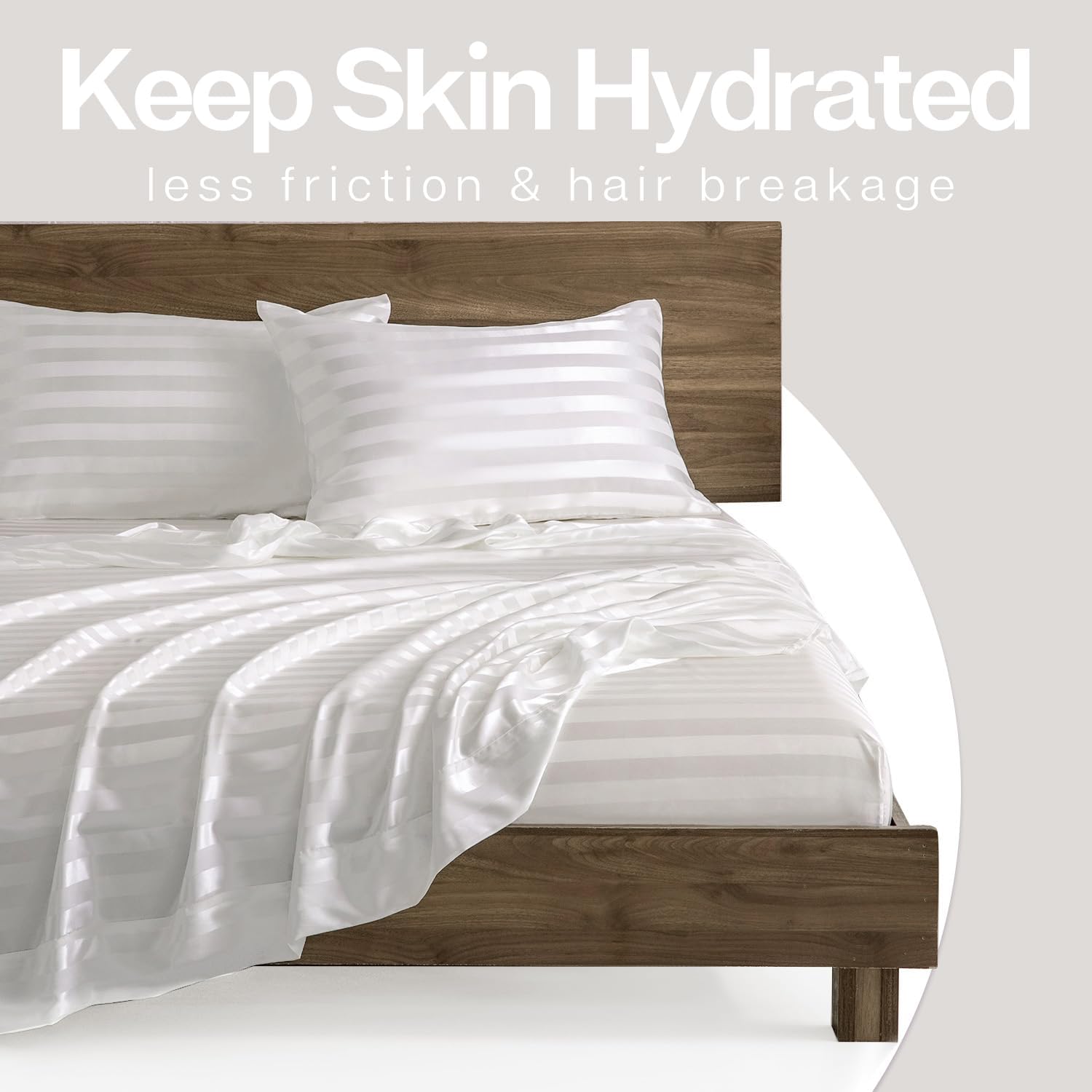 MR&HM Satin Pillowcase for Hair and Skin, Silk Satin Pillowcase 2 Pack, King Size Pillow Cases Set of 2, Silky Pillow Cover with Envelope Closure (20x36, Ivory Striped)