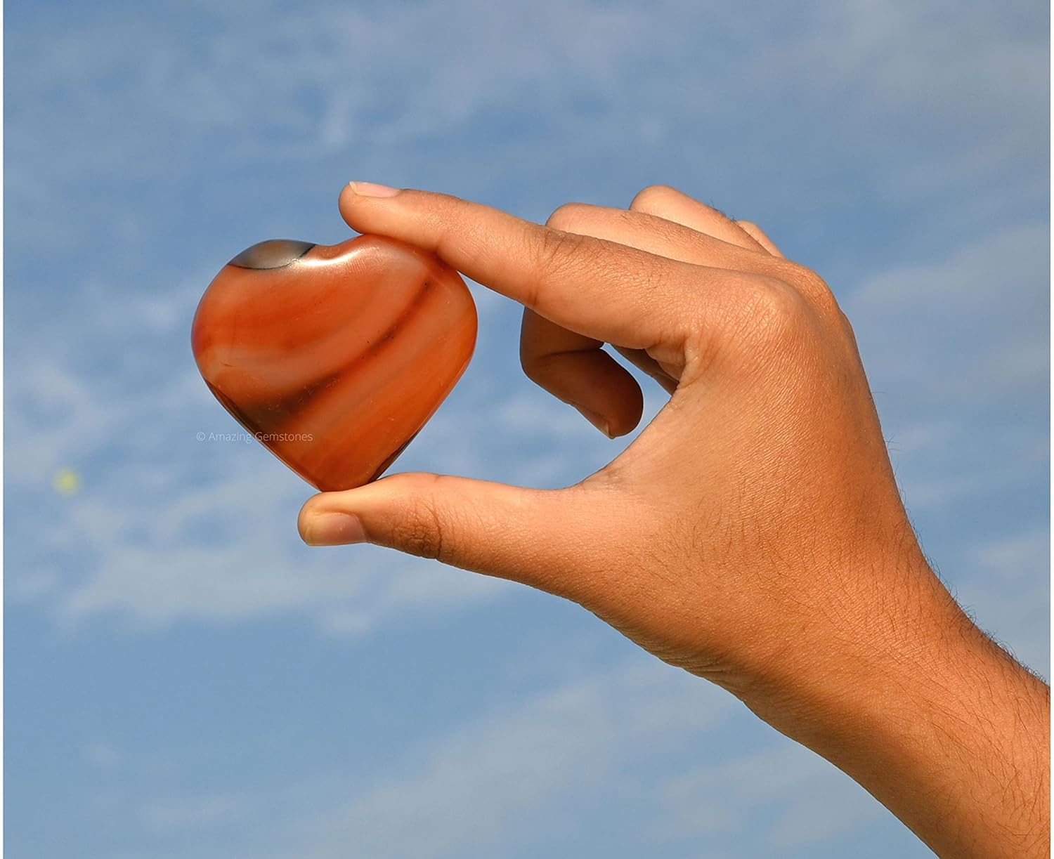 Carnelian Crystal Heart Palm Stone - Pocket Massage Worry Stone for Natural Body Chakra Balancing, Reiki Healing and Crystal Grid