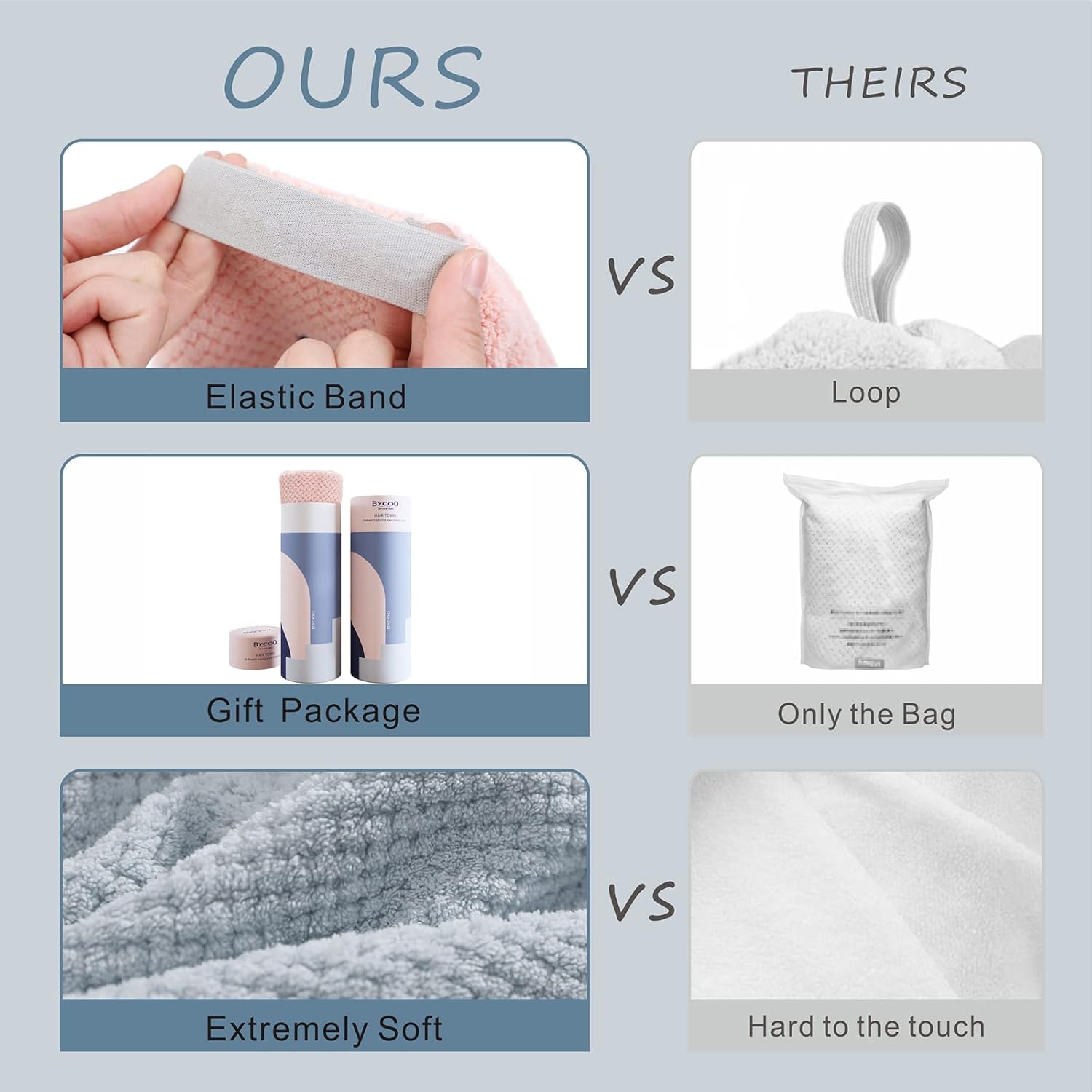 - EASY TO USE , NEVER FALLS OFF - This Lightweight and durable ultra soft hair towel wraps, we have a strong elastic loop on the back design that is easy to use, Simply wrap, twist, tuck keep the hair turban towel secure on your head - it won't fall off! Provide greater convenience for hands-free multitasking, mornings and nights.