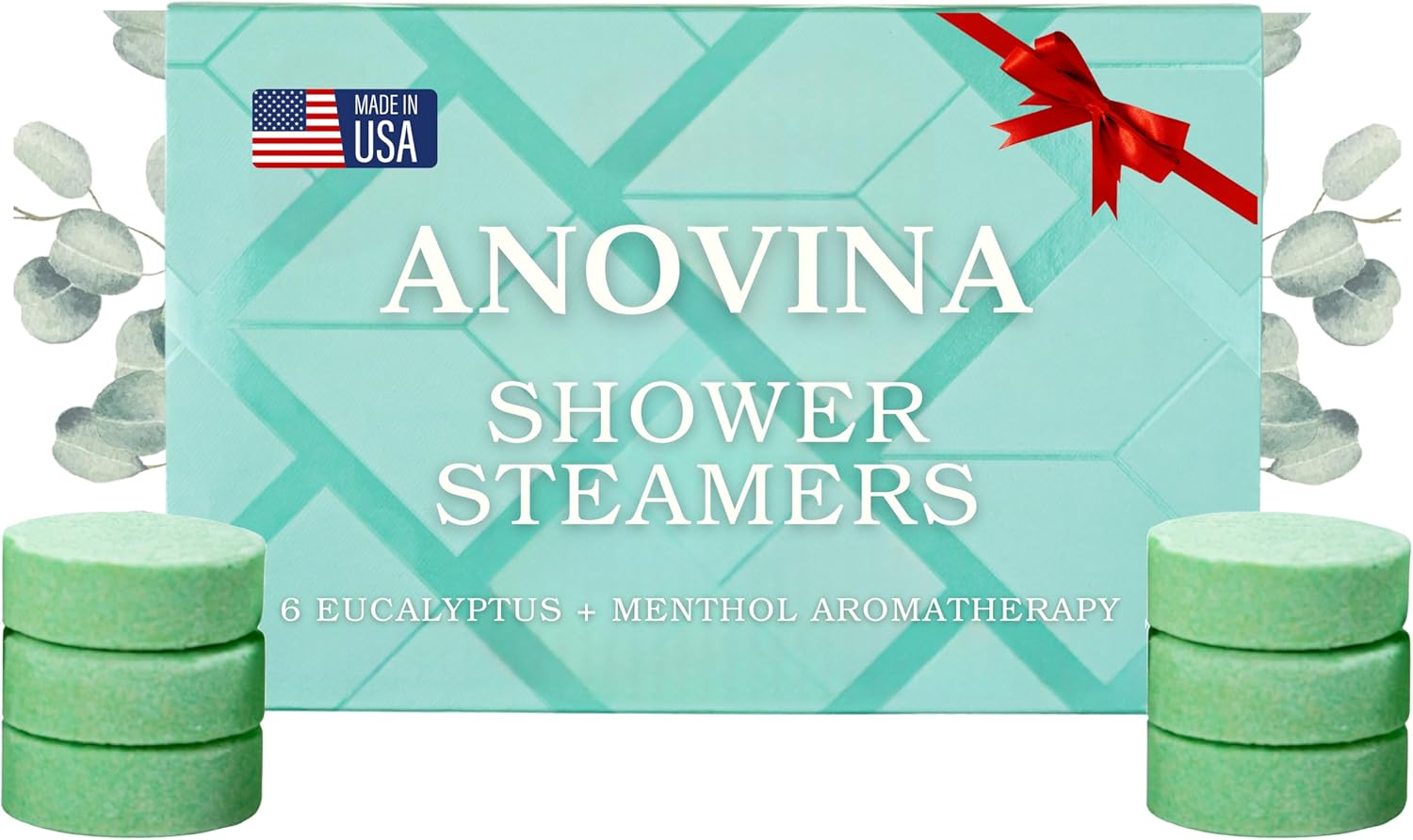 Anovina Eucalyptus & Menthol Shower Steamers β Aromatherapy Shower Tablets with Soothing Vapors β Made in USA β Shower Bomb Gift Set for Men & Women