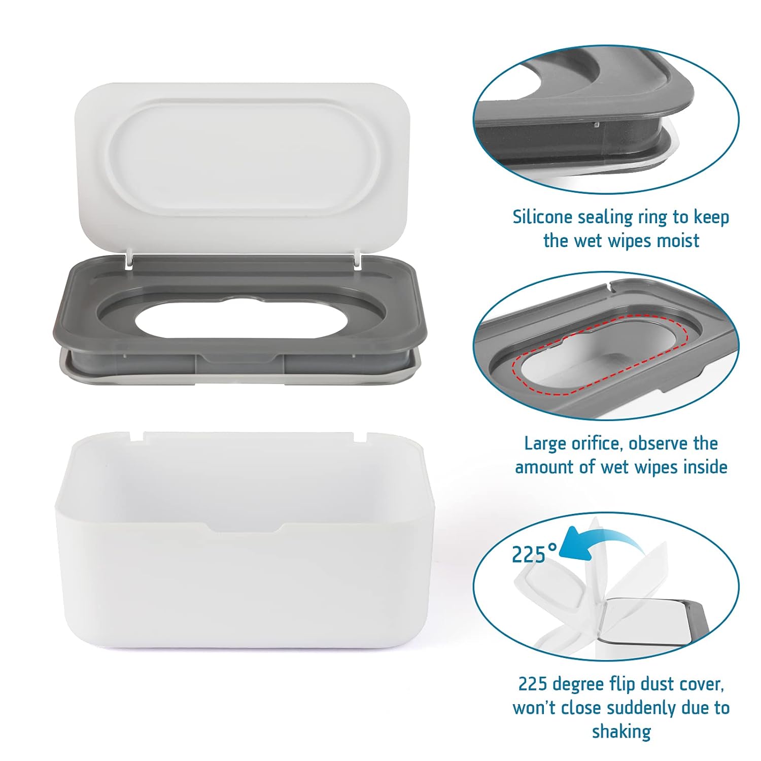 - KEEP WIPES MOIST AND CLEAN: The sealed silicone ring and cover in the baby wipe dispenser can keep the wet wipes in a moist and clean state, allowing you to provide a perfect service when you need wet wipes urgently.