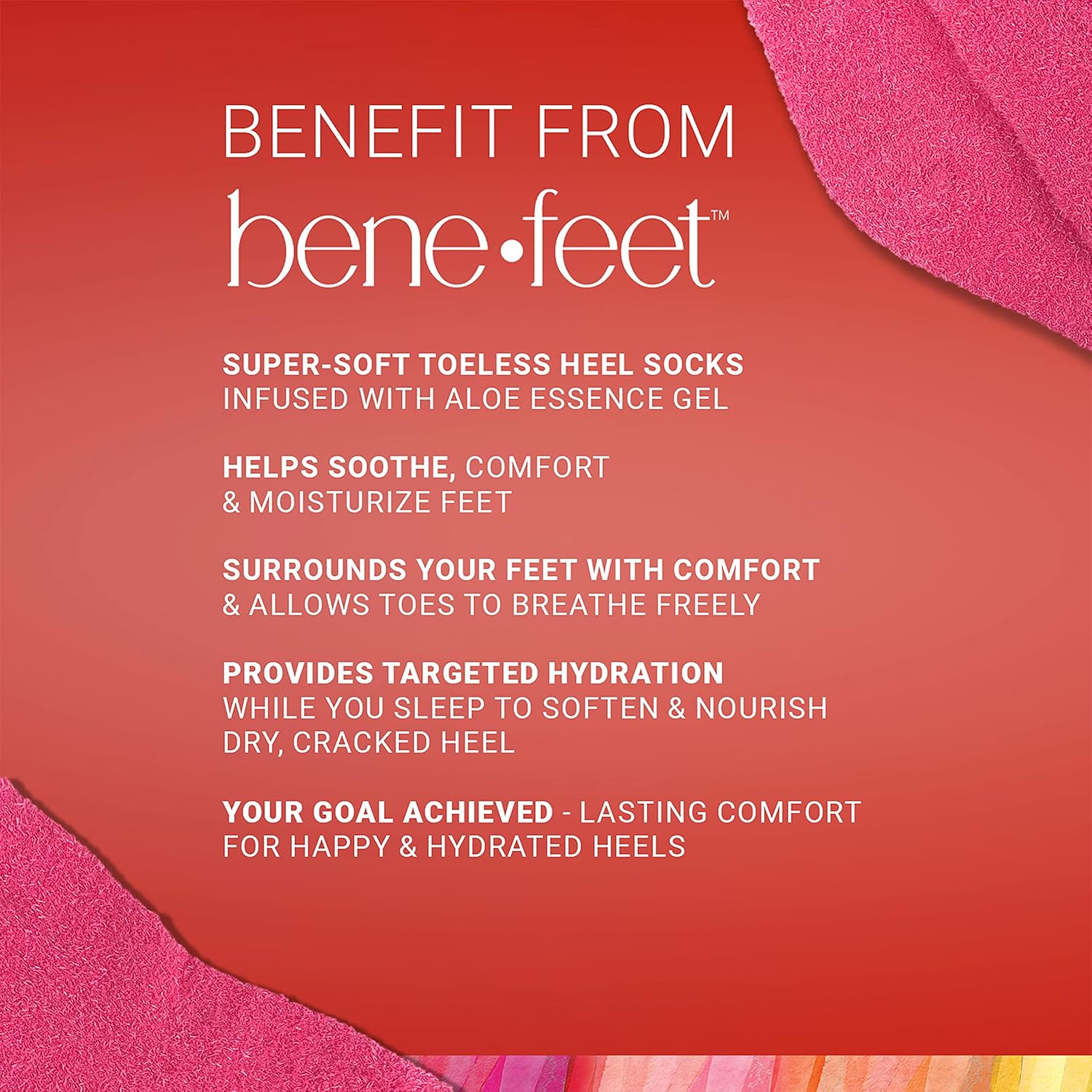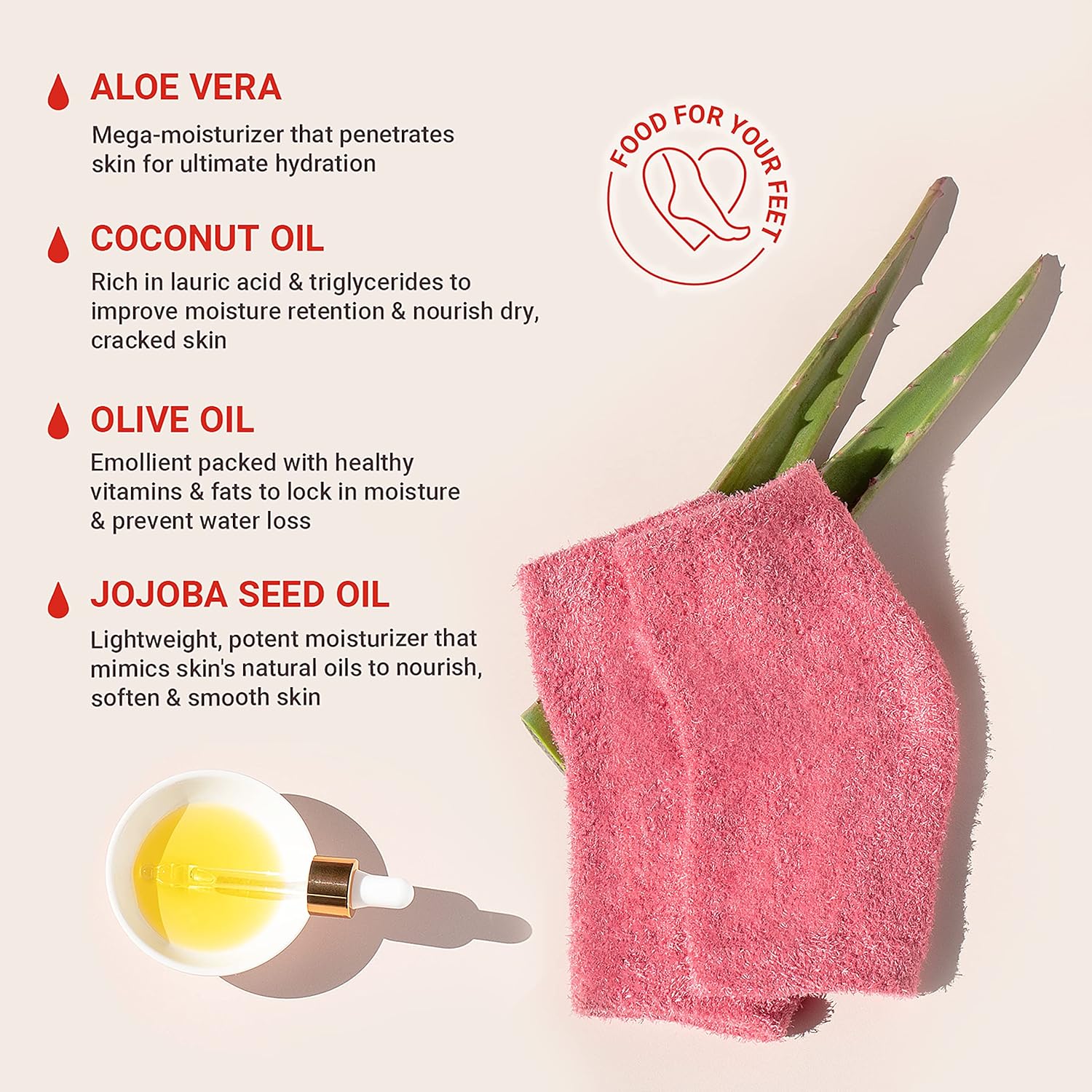 - Oil-Infused Fabric: Aloe blends with Coconut Oil and Jojoba Oil to soothe cracked heels