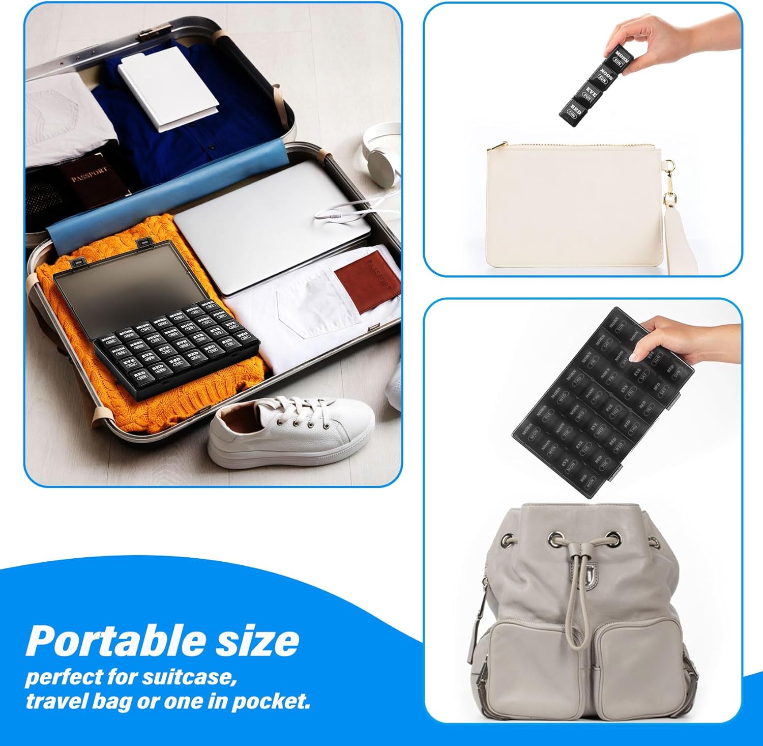 - 【SATIFACTION GUARANTEED】We believe you will adore our large size 7 day pill case and find it makes your daily pill routine easy and safer. However, if you are not completely satisfied or find your product is damaged on arrival, we will replace or refund your purchase, that’s our promise.