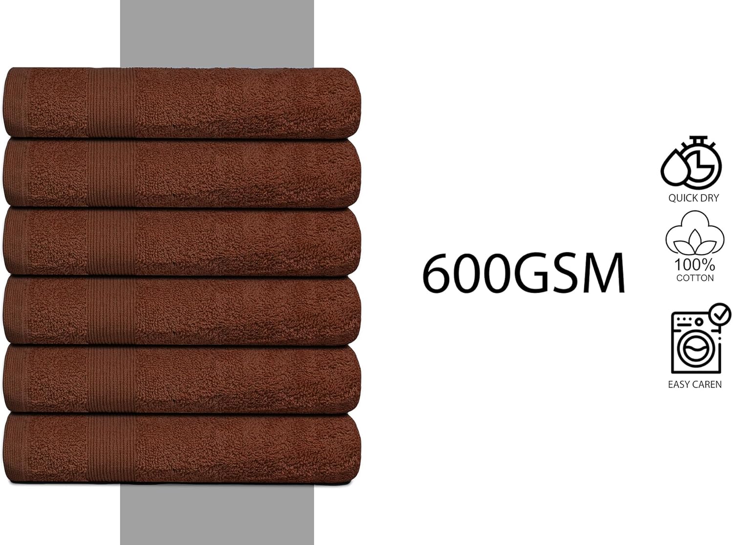 Premium Hand Towels Pack of 6 (16" x 30”) 100% Combed Ring Spun Cotton | Highly Absorbent Hand Towels Set | Ultra Soft for Home, Gym & Spa (Dark Brown)