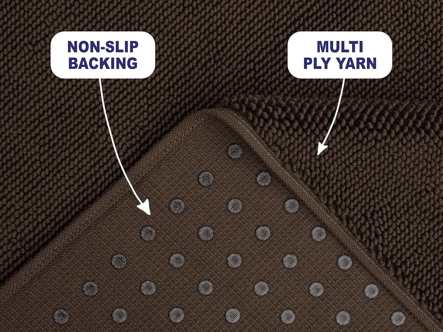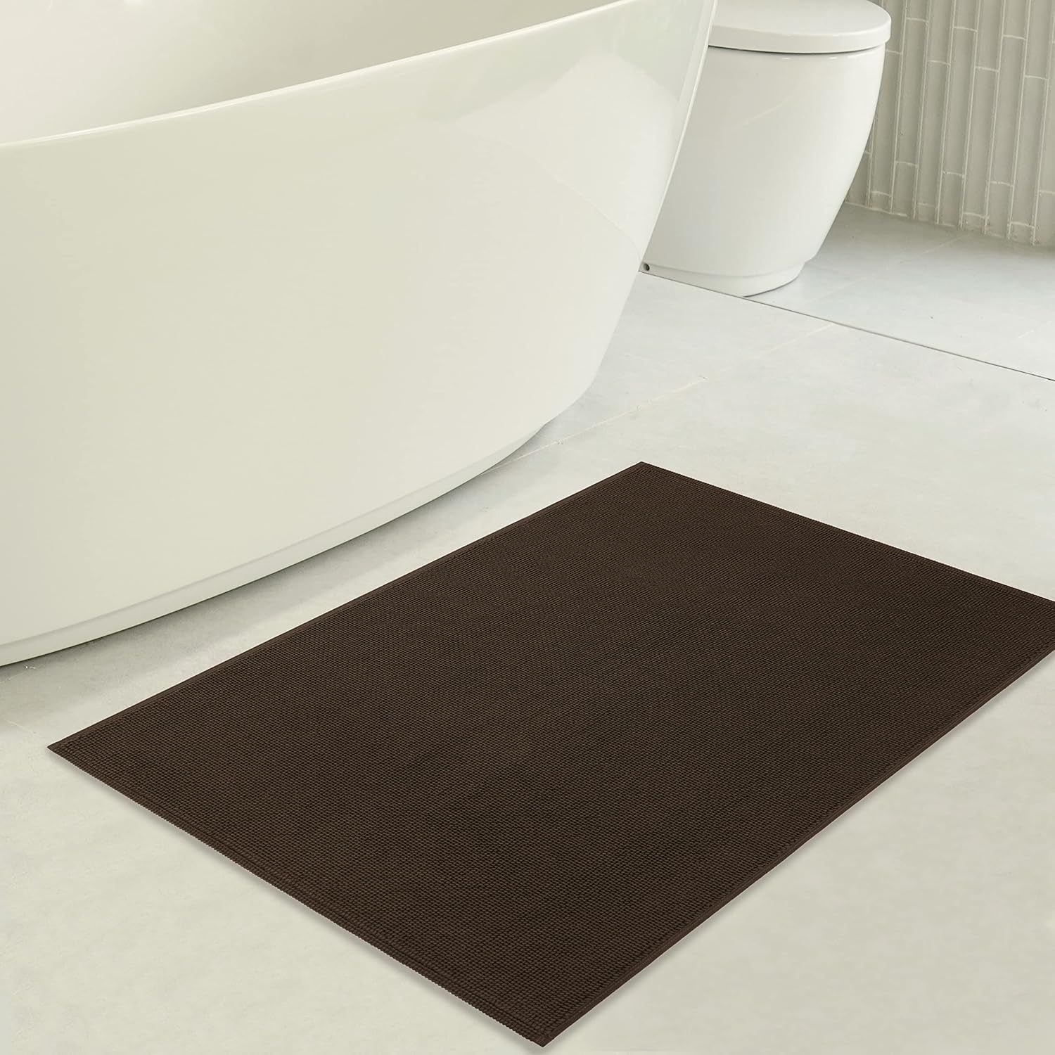 American Soft Linen Bath Rug, 20 in 34 in 100% Cotton Bath Mats Rugs for Bathroom, Slip Reducer Washable Shaggy Form Area Rugs, Brown Bath Rug