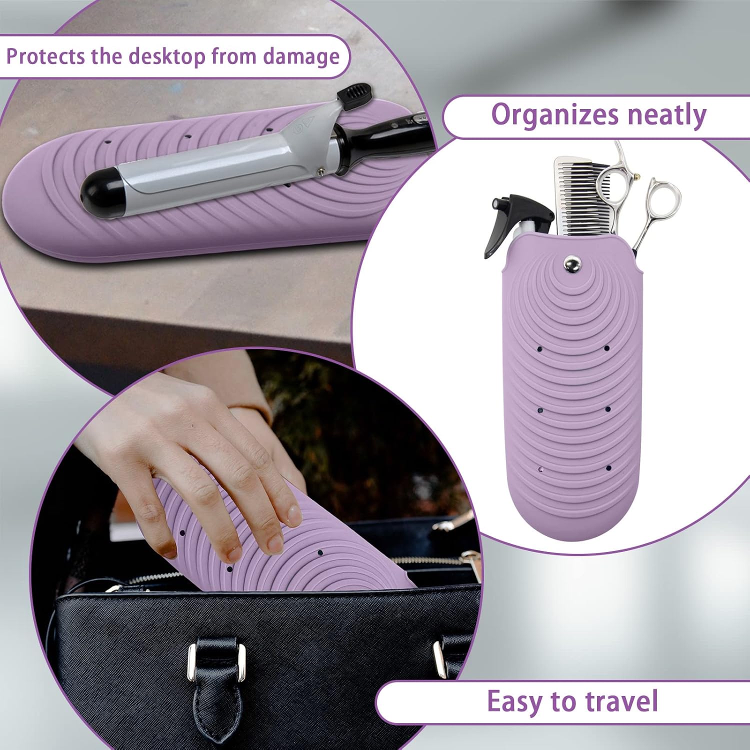 Heat Resistant Silicone Mat Pouch for Hair Styling Tools, Curling and Flat Irons Non-Slip Travel Cover, Small Portable Straightener Pad for Curler Wands Storage, Hot Waver (Purple)