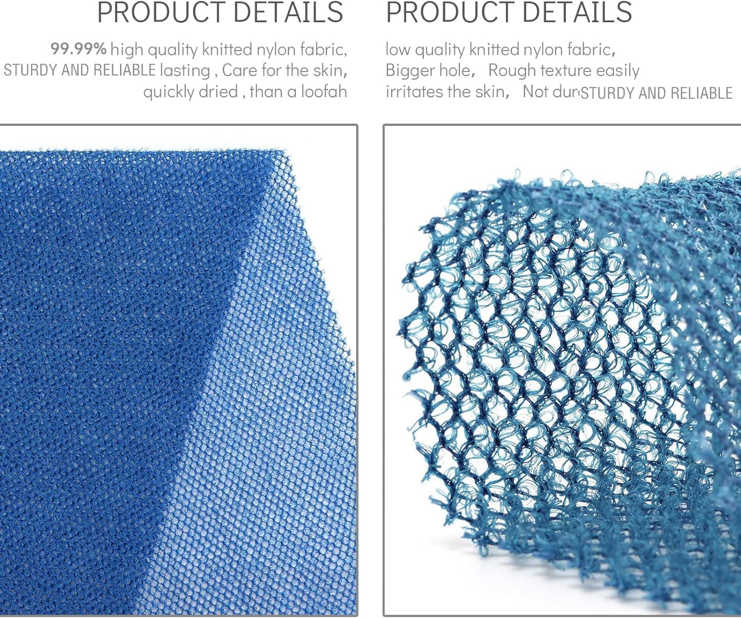 - 【More efficient cleaning】The exfoliating body net is rougher than a ordinary bathing cloth, but soft enough for daily body cleansing.easy for removing dead skin, dirt, oil, and eliminating impurities, unclogging pores, suitable for women and men of most ages to use