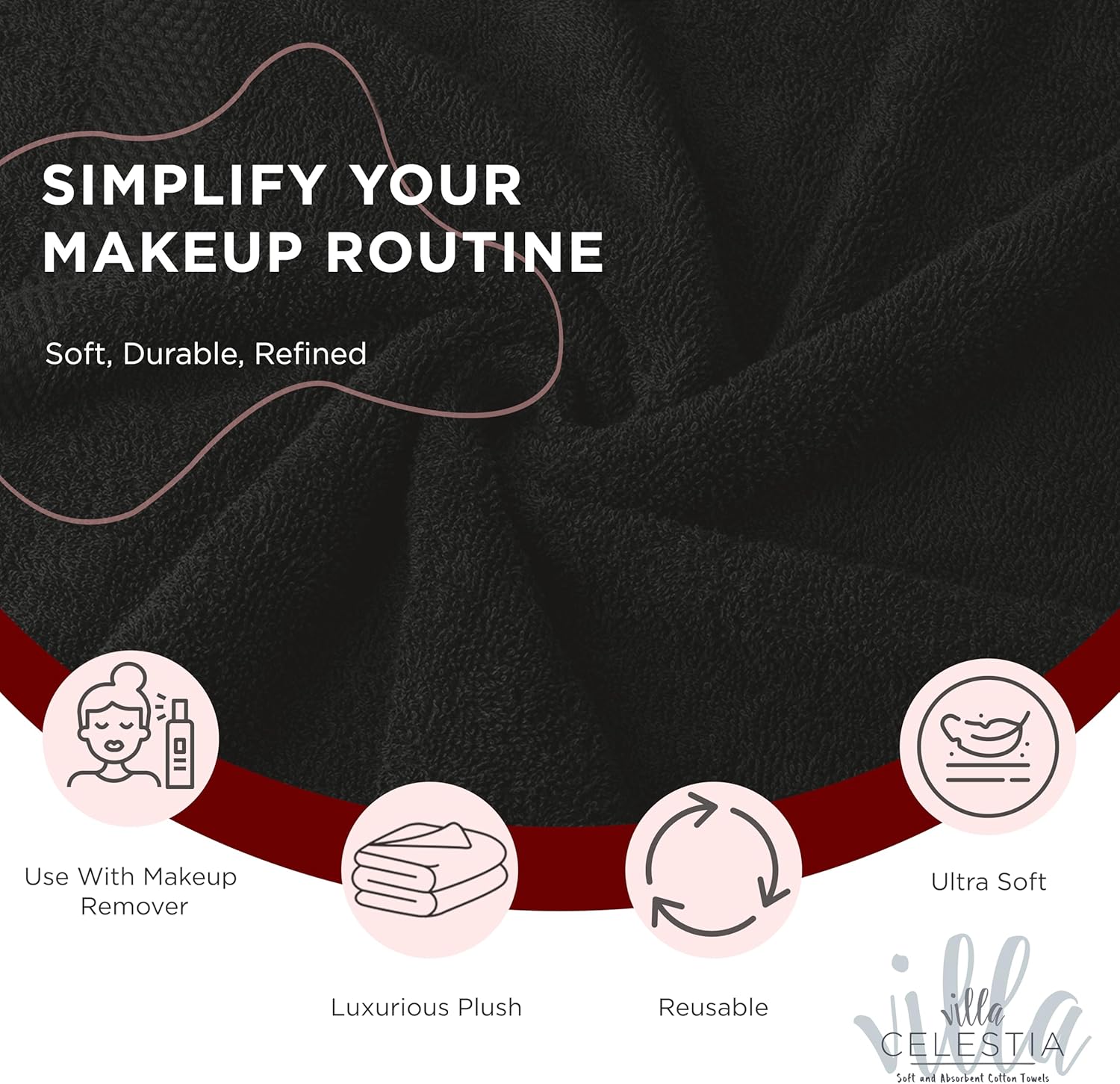 Black Makeup Remover Towels Set of 4, 100% Soft Cotton Reusable Luxury 4 Pcs Makeup Wipes for Face, Ideal for Salon, Bath, Hotel, Spa, Washcloths for Face Pack of 4 (12"X12")